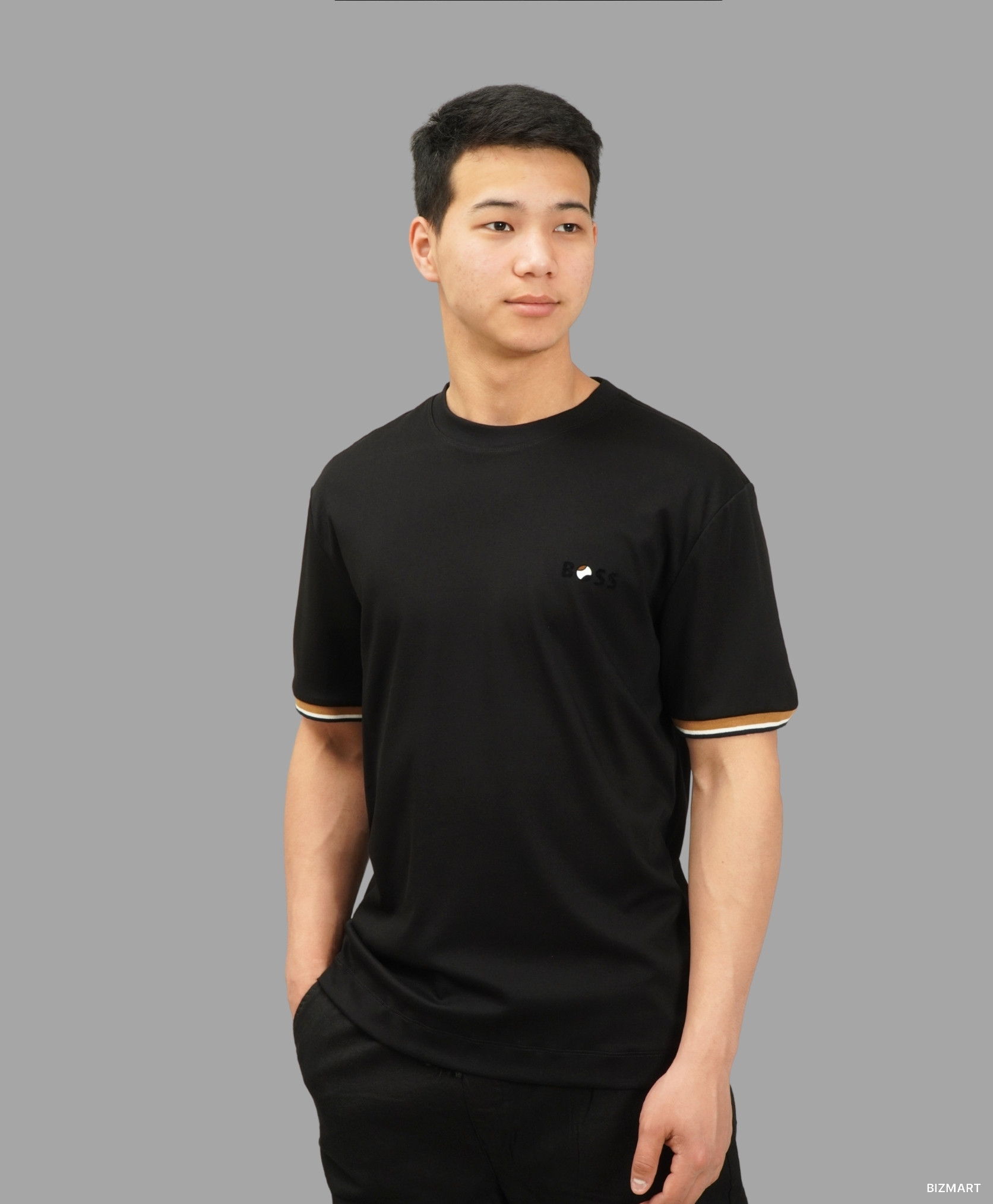 Элегантная футболка от BOSS — сочетание классики и актуального дизайна. Модель выполнена в черном цвете с контрастными полосками на рукавах, что придаёт образу стильный акцент. Минималистичный логотип BOSS на груди делает её универсальной для любого повода — от повседневных прогулок до встреч с друзьями.