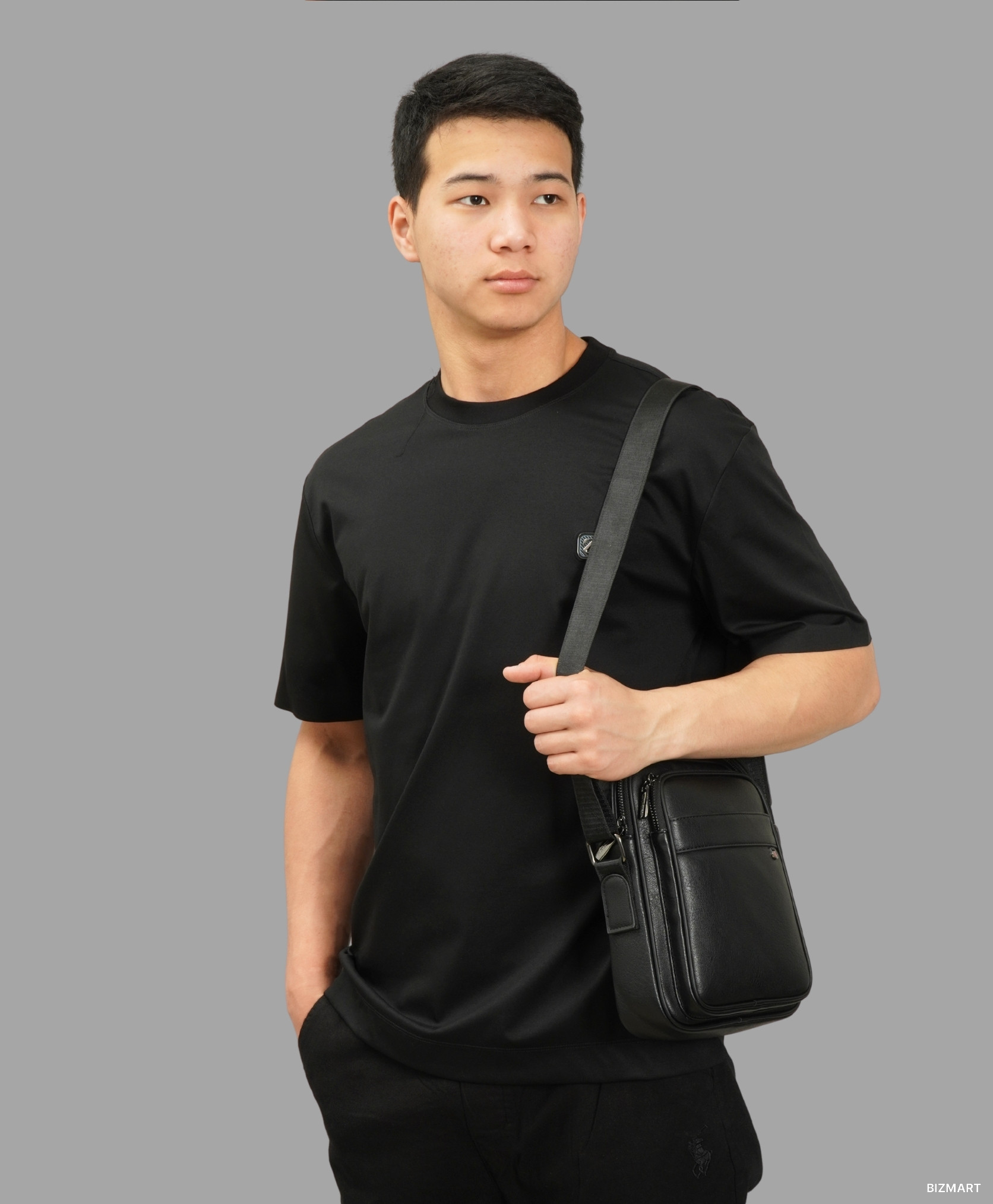 Городской стиль, который объединяет практичность и эстетику. Чёрная футболка свободного кроя остаётся основой образа — минимализм в каждой детали, с небольшим логотипом на груди для добавления акцента. Мягкий материал и расслабленная посадка делают её идеальным вариантом для повседневного ношения.