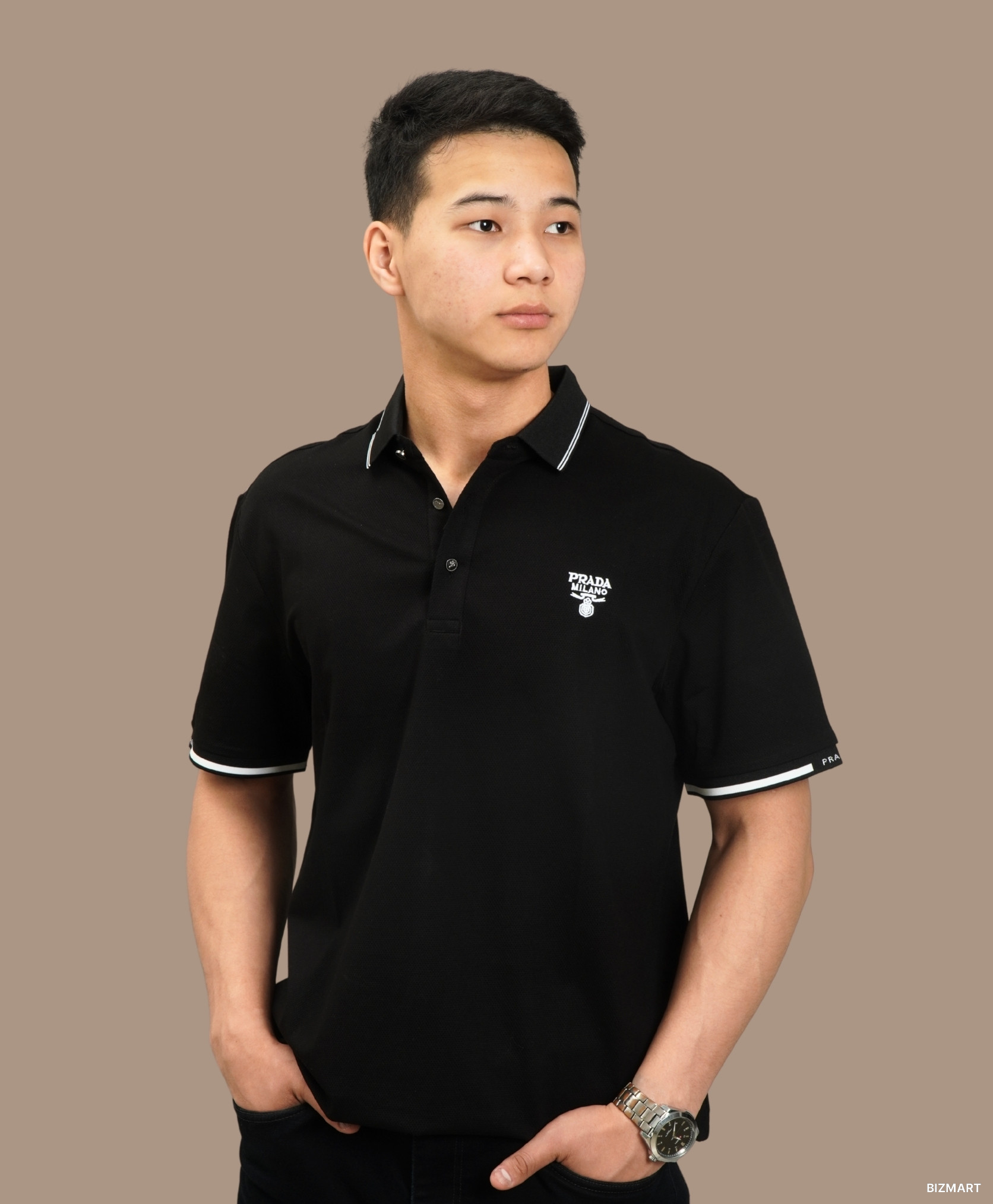 Черный батник от Prada с контрастными белыми вставками — воплощение премиального стиля и безупречного вкуса. Модель сочетает в себе лаконичный дизайн и фирменную эстетику легендарного итальянского бренда. Выполнен из качественного, плотного материала, приятного к телу и подходящего для повседневной носки в любое время года. Белые вставки эффектно подчеркивают линии кроя, добавляя образу динамики и визуальной структуры. Классический прямой силуэт и аккуратная посадка обеспечивают комфорт и свободу движений. Элегантный, но сдержанный дизайн делает этот батник универсальным — его можно носить как с джинсами, так и с более строгими брюками, создавая стильные городские образы. Идеальный выбор для тех, кто ценит люкс, минимализм и продуманные детали.
