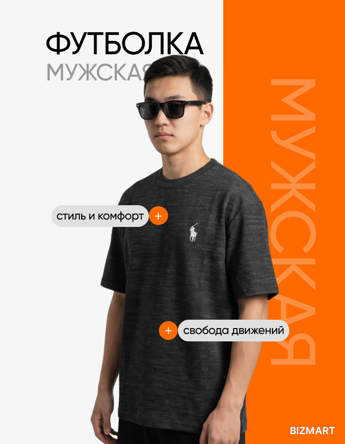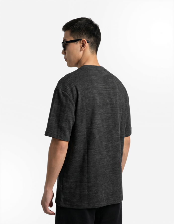 Премиальная мужская футболка графитового цвета с меланжевым эффектом. Модель сочетает в себе благородную фактуру ткани и классический свободный крой для создания безупречного повседневного образа.