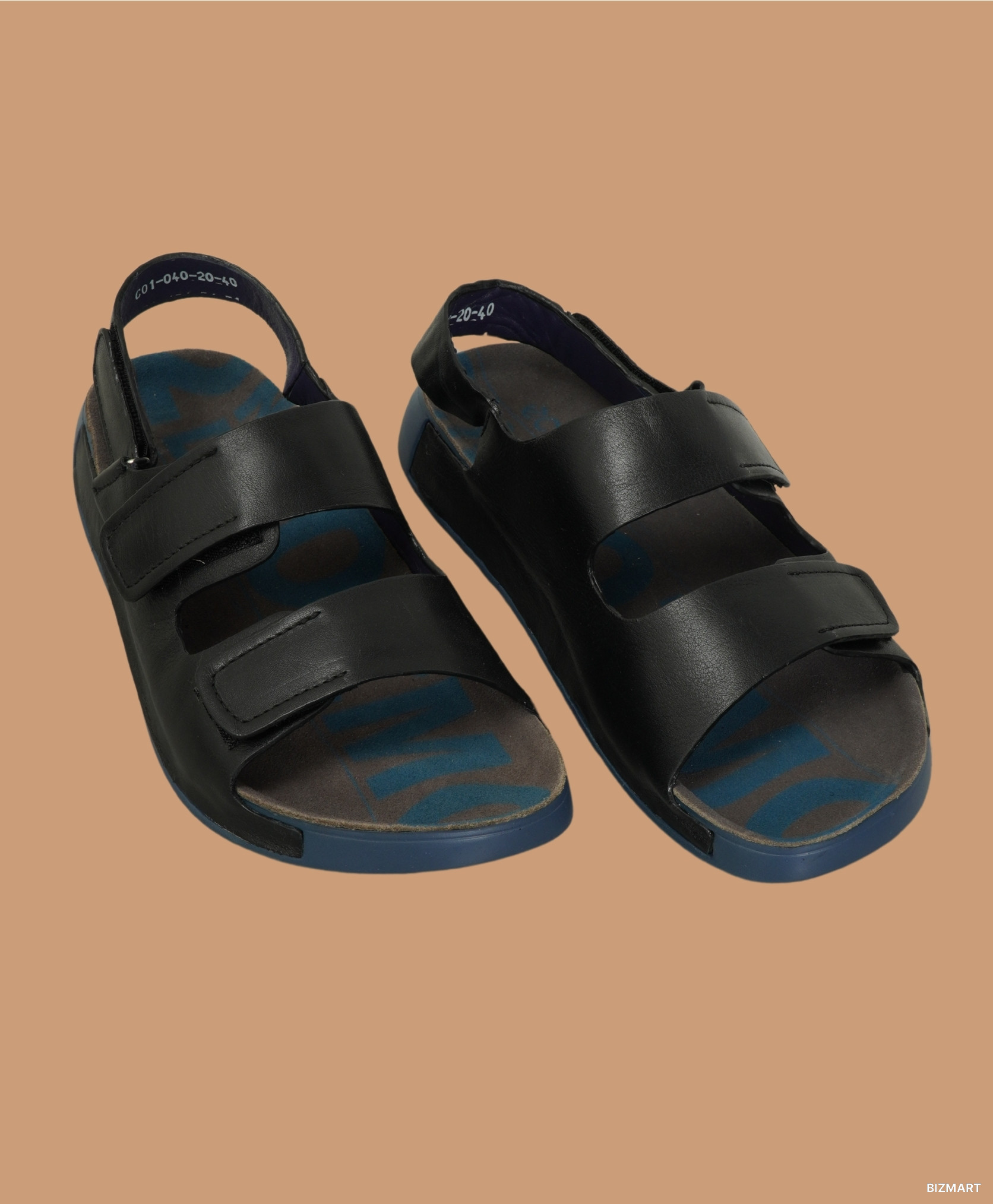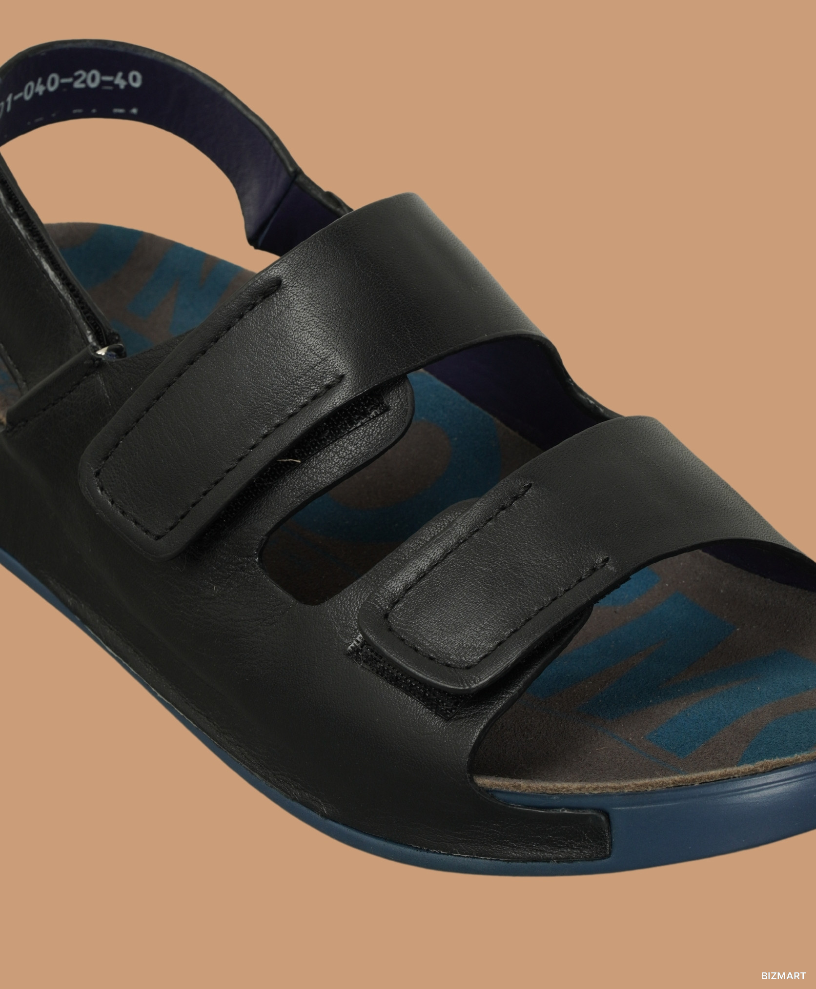 Практичные и удобные сандалии из чёрной натуральной кожи с классическим дизайном и задней пяткой для дополнительной фиксации стопы. Два регулируемых ремешка на липучке обеспечивают отличную посадку и лёгкость надевания. Комфортная анатомическая стелька и прочная подошва делают эту модель идеальной для летних прогулок и повседневного ношения. Стильная универсальность, подходящая как для города, так и для отдыха.