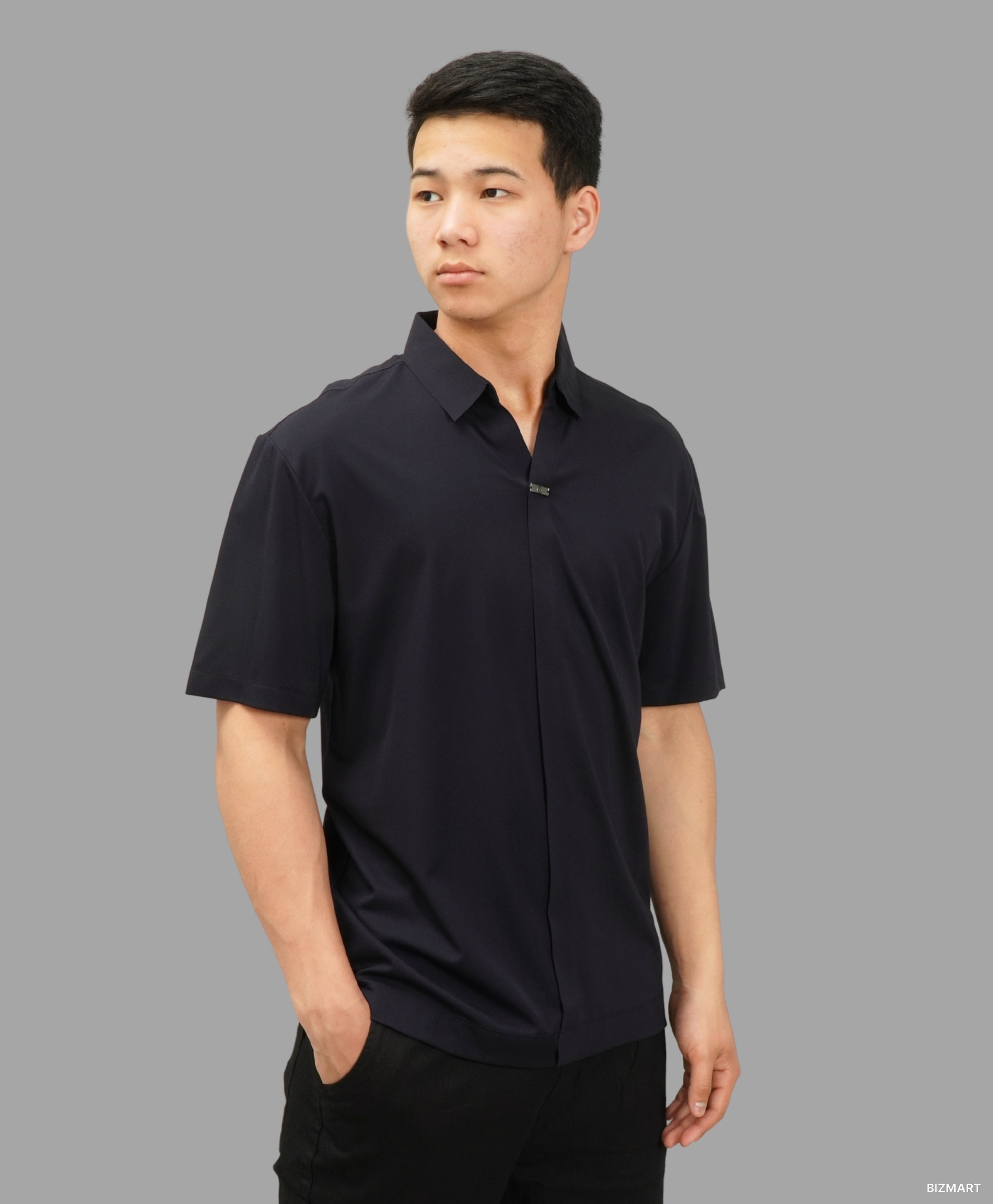 Современная мужская футболка в насыщенном синем цвете с оригинальным воротником-стойкой и V-образным вырезом — идеальный выбор для стильного повседневного образа. Модель отличается лаконичным дизайном и удобной посадкой, а декоративная планка на груди придаёт образу нотку элегантности.