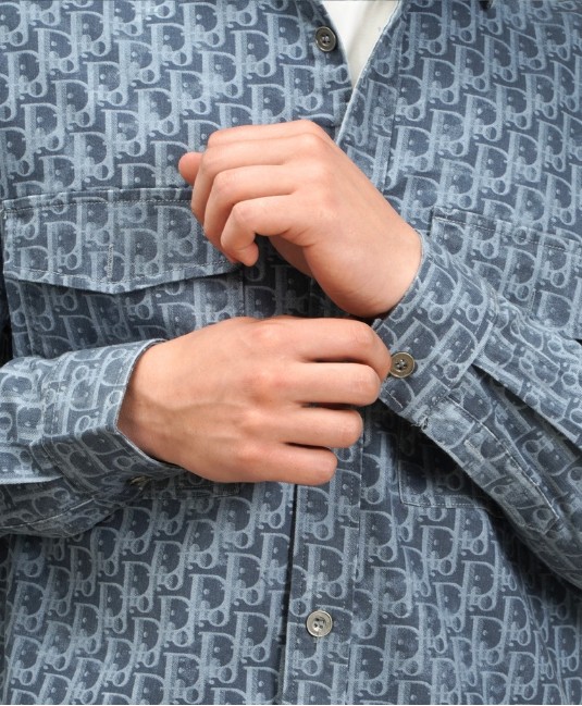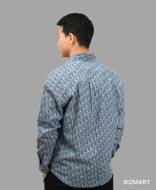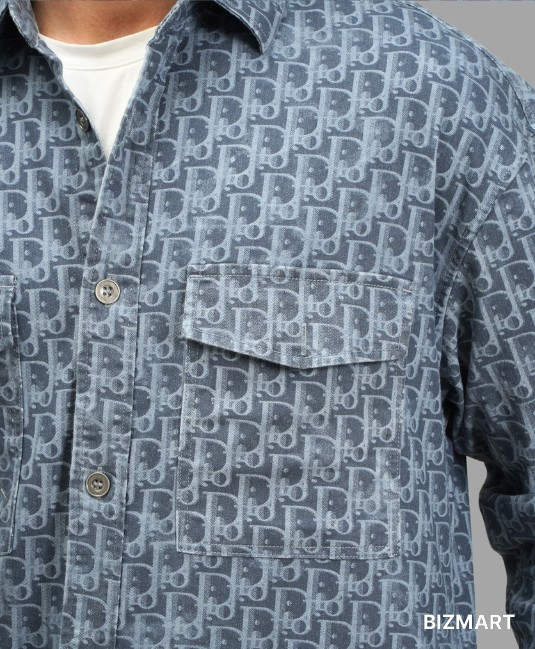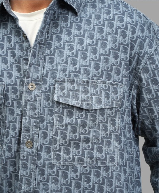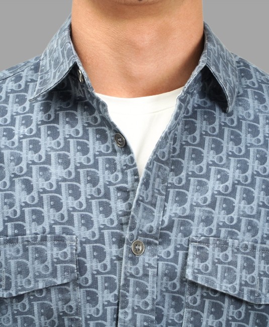 Мужская джинсовая рубашка Dior — элегантный выбор для стильного повседневного образа. Модель выполнена из плотного высококачественного денима с оригинальным геометрическим принтом в тёмных тонах. Два нагрудных кармана, один из которых украшен брендированной вставкой, добавляют образу акценты и функциональность. Контрастная прострочка подчёркивает премиальный крой и придаёт рубашке выразительность. Логотип Dior на груди акцентирует внимание на безупречном вкусе и статусе. Отлично сочетается с джинсами, брюками и шортами — универсальное решение в стиле casual с элементами люксовой эстетики.