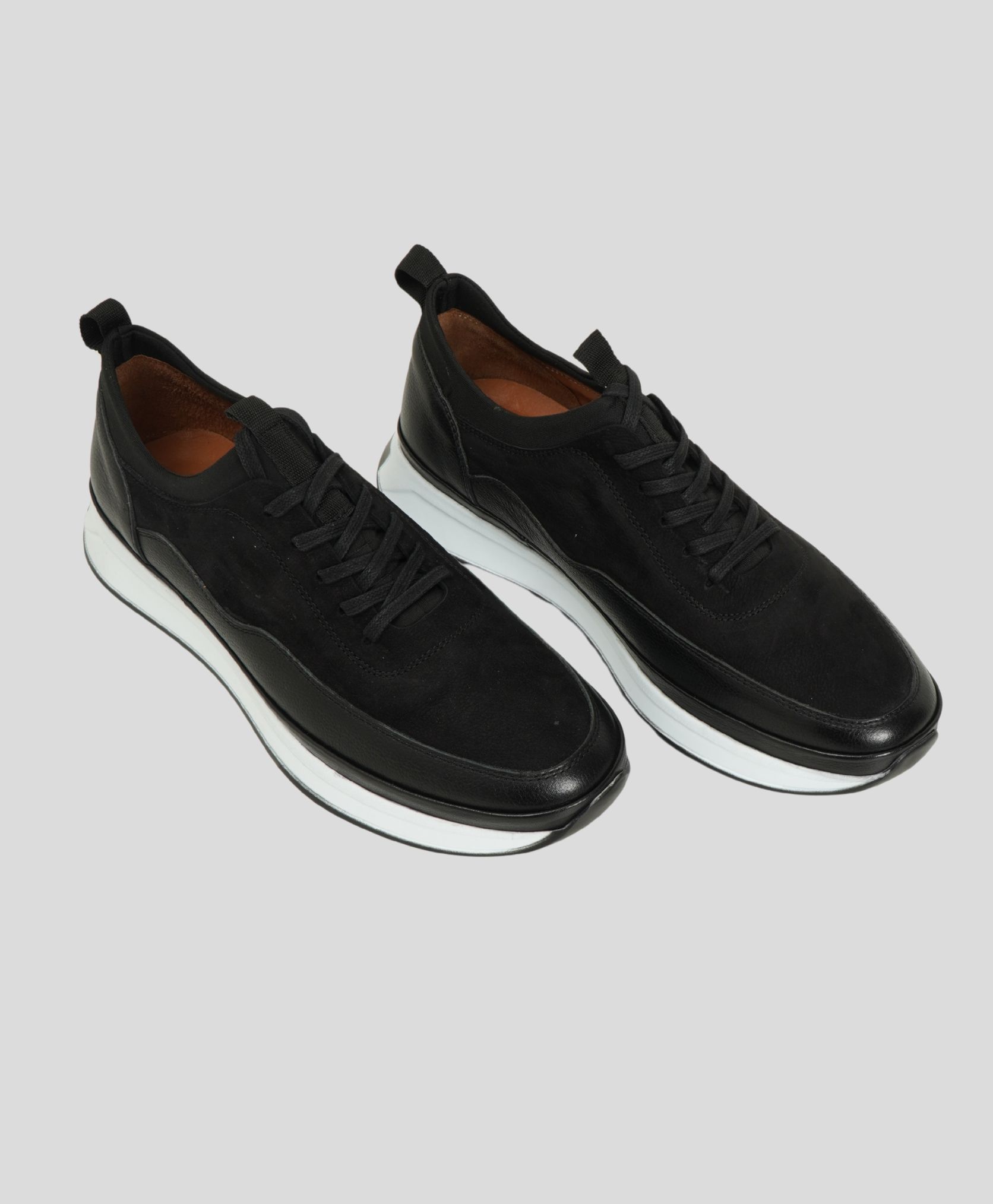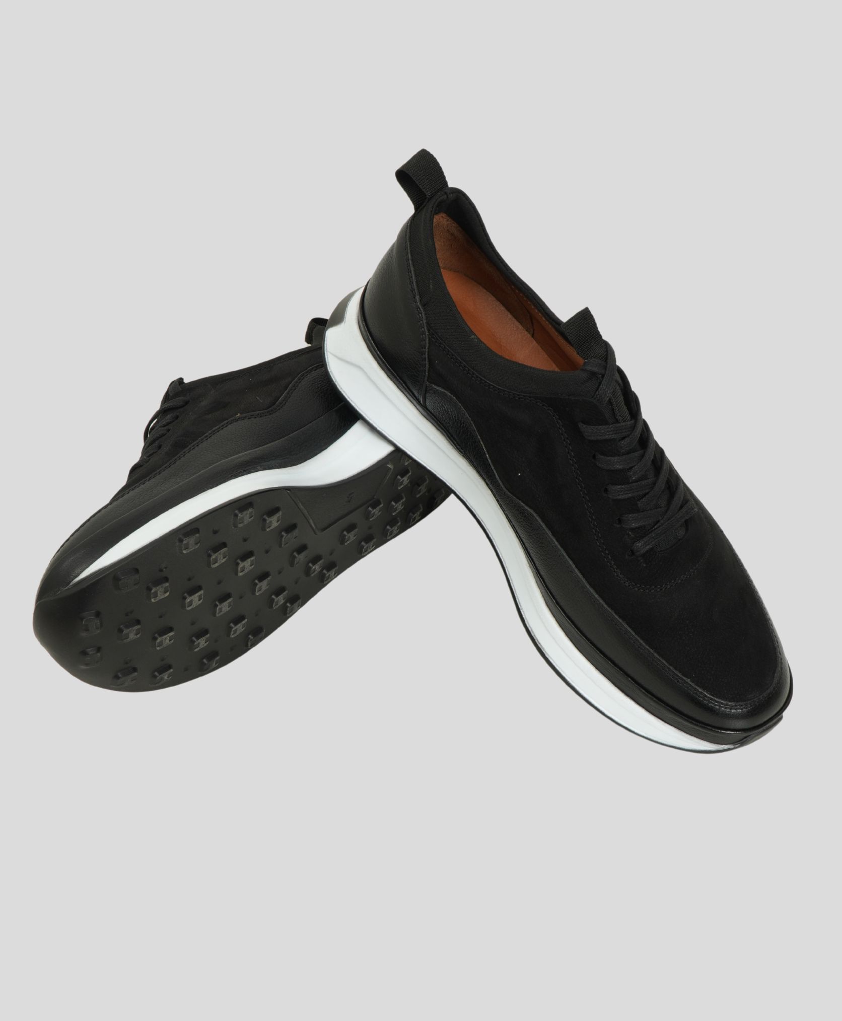 Представляем вашему вниманию стильные мужские кроссовки, сочетающие в себе элегантность и удобство. Выполненные из комбинации натуральной кожи и замша, они обеспечивают комфорт, долговечность и стильный внешний вид. Универсальный черный цвет позволяет легко сочетать обувь с повседневными и деловыми образами.
