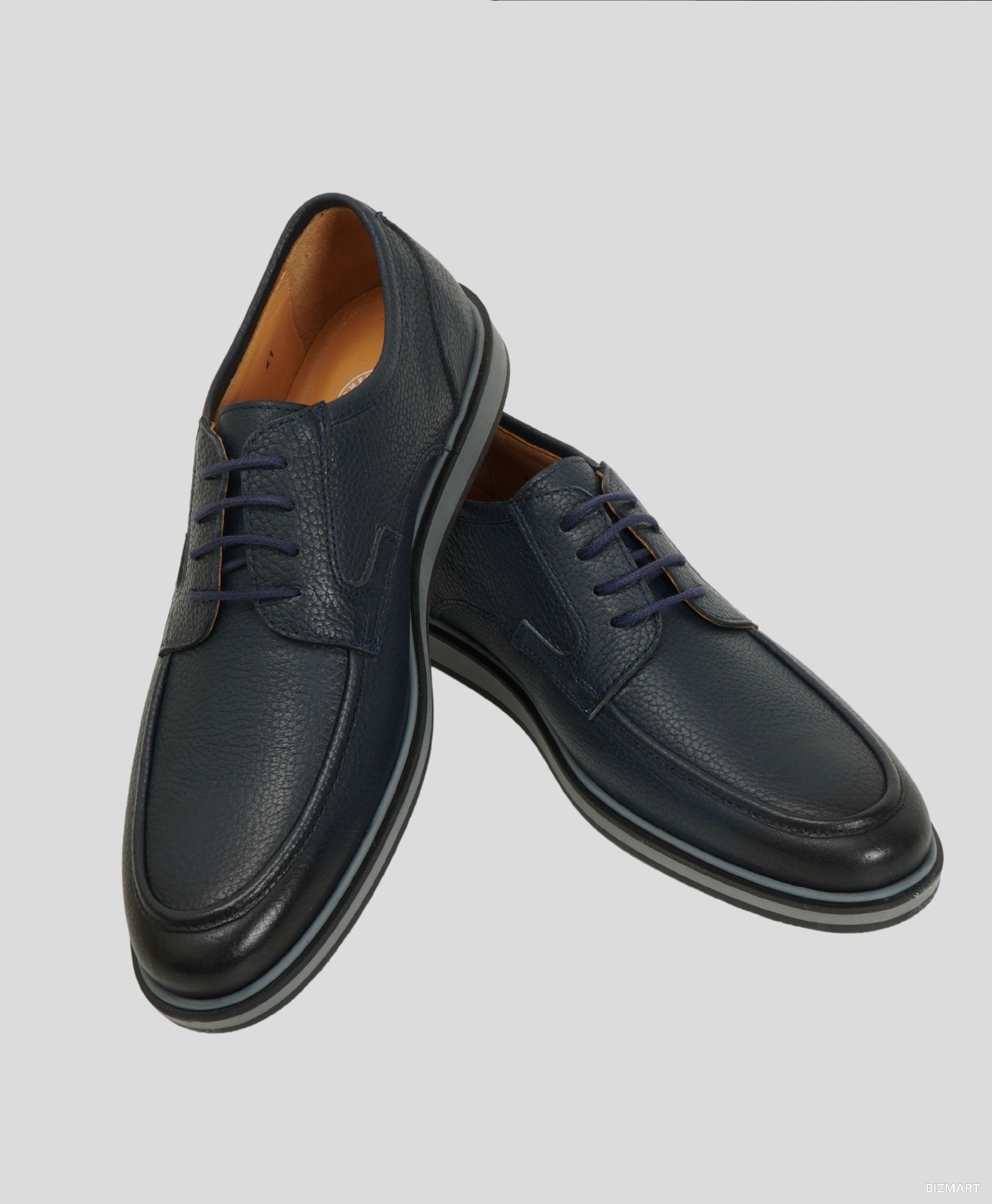 Эти стильные мужские туфли идеально подойдут для повседневной носки и деловых встреч. Выполнены из качественной текстурированной натуральной кожи темно-синего цвета, что придает им элегантный и современный вид. Туфли имеют классическую форму с удобной шнуровкой, что обеспечивает надежную фиксацию на ноге и комфорт при длительном ношении.