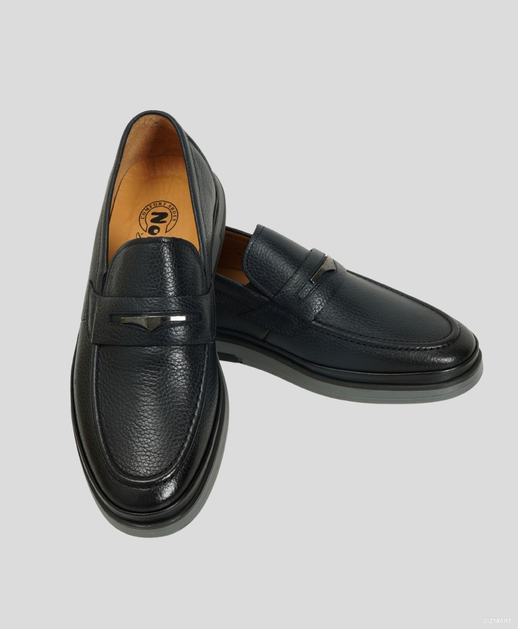 Эти стильные мужские лоферы выполнены из качественной натуральной кожи темно-синего цвета с зернистой текстурой, что придает модели элегантный и современный вид. Легкая и удобная модель без шнурков идеально подойдет для ежедневной носки и создания стильных образов на каждый день. Декоративная металлическая пряжка, расположенная на передней части обуви, добавляет акцент и делает лоферы более выразительными. Внутренний слой обуви состоит из мягкой подкладки, что обеспечивает комфорт даже при длительном ношении. Классическая безшнурковая конструкция позволяет быстро надевать и снимать обувь, делая ее идеальной для активных людей. - Материал верха: Натуральная кожа с текстурой, глубокого темно-синего цвета. - Подкладка: Мягкая тканевая подкладка, обеспечивающая комфорт. - Подошва: Прочная, с хорошим сцеплением, с контрастной линией по бокам. - Тип застежки: Без шнурков (с декоративной пряжкой). - Назначение: Подходит для повседневной носки, деловых встреч и неформальных событий. Преимущества: Высококачественные материалы, которые обеспечивают долговечность и удобство. Современный дизайн, сочетающий элегантность и комфорт. Универсальный цвет, который легко сочетать с различными стилями одежды. Эти лоферы станут отличным дополнением к вашему гардеробу, создавая стильные и удобные образы для любых случаев жизни.