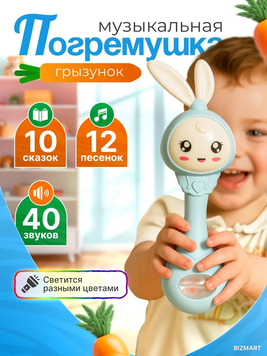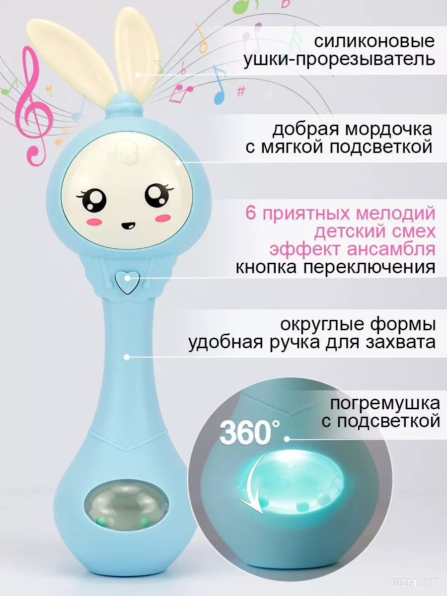 Музыкальная погремушка-прорезыватель «Зайка» станет любимым другом вашего малыша с первых месяцев жизни. Интерактивный зайчик воспроизводит 6 мелодий, которые можно переключать нажатием кнопки, а при встряхивании игрушка издаёт приятные звуки погремушки. Предусмотрено два режима громкости, что позволяет использовать игрушку дома и на прогулке.
