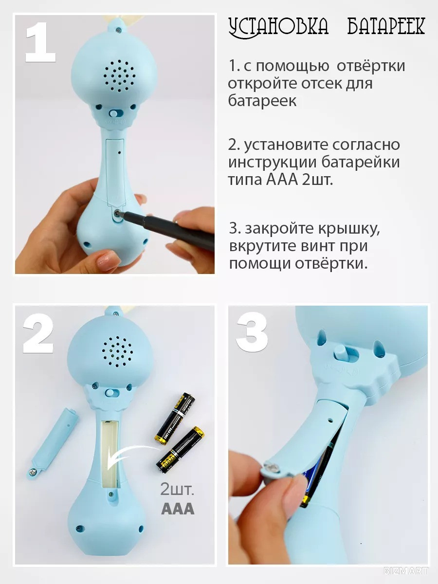 Мягкая подсветка мордочки и животика безопасна для глаз ребёнка и помогает удерживать внимание малыша. Ушки зайки выполнены из пищевого силикона и служат прорезывателем — они мягко массируют дёсны, уменьшают дискомфорт при прорезывании зубов и улучшают кровообращение.