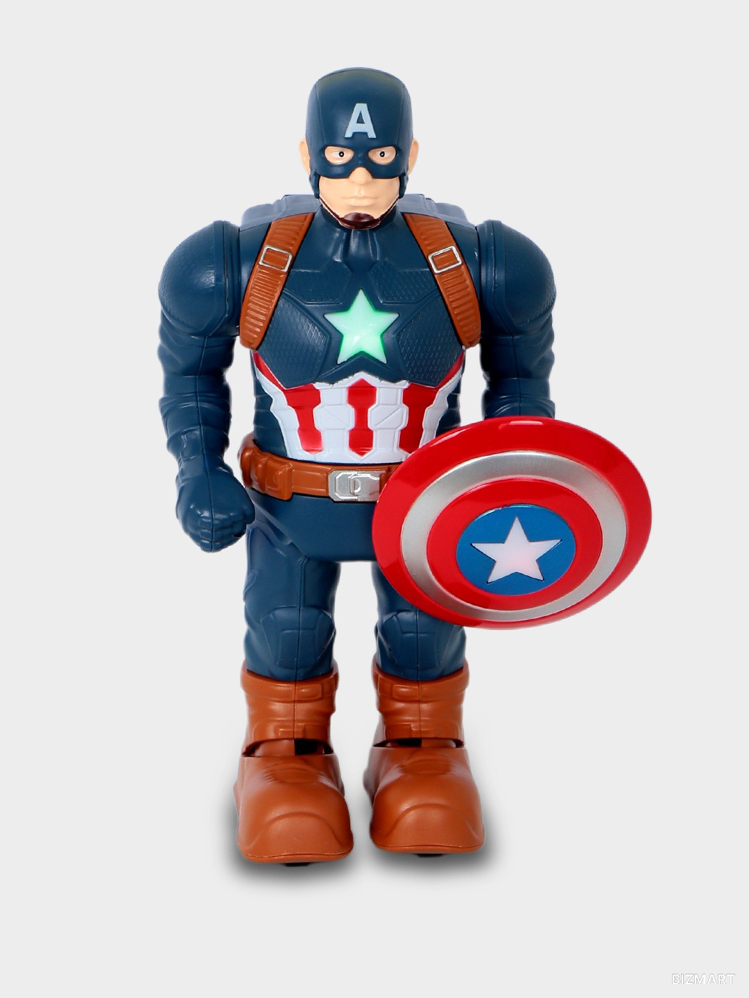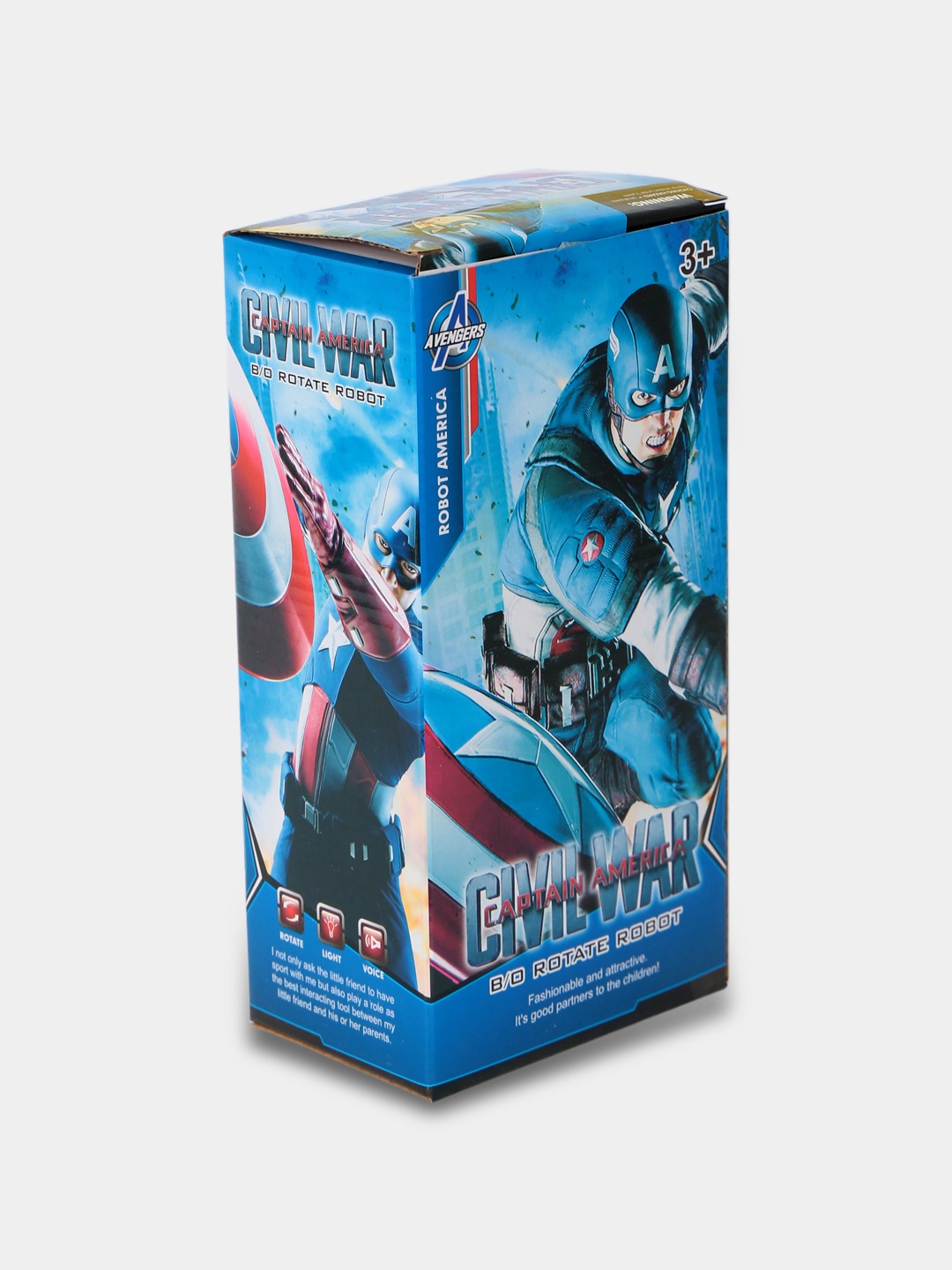 Музыкальный робот «Капитан Америка» — яркая интерактивная игрушка для детей от 3 лет, созданная по мотивам популярного супергероя. Фигурка оснащена световыми и звуковыми эффектами: загорается звезда на груди, воспроизводится музыка и звуки, а робот движется и вращается, привлекая внимание ребёнка и делая игру динамичной и увлекательной.