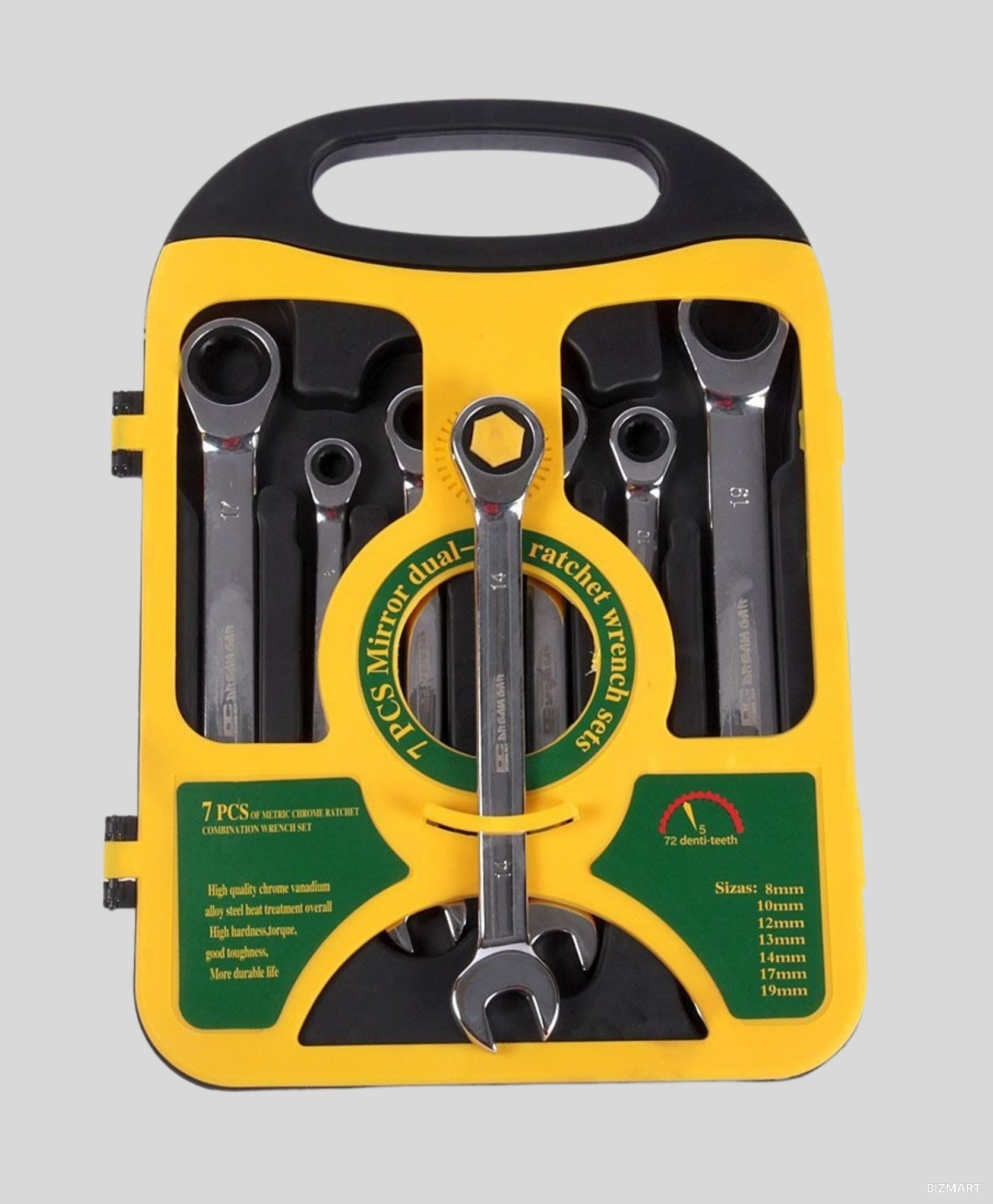 ✔ 7 накидных ключей (размеры 8, 10, 12, 13, 14, 17, 19 мм)