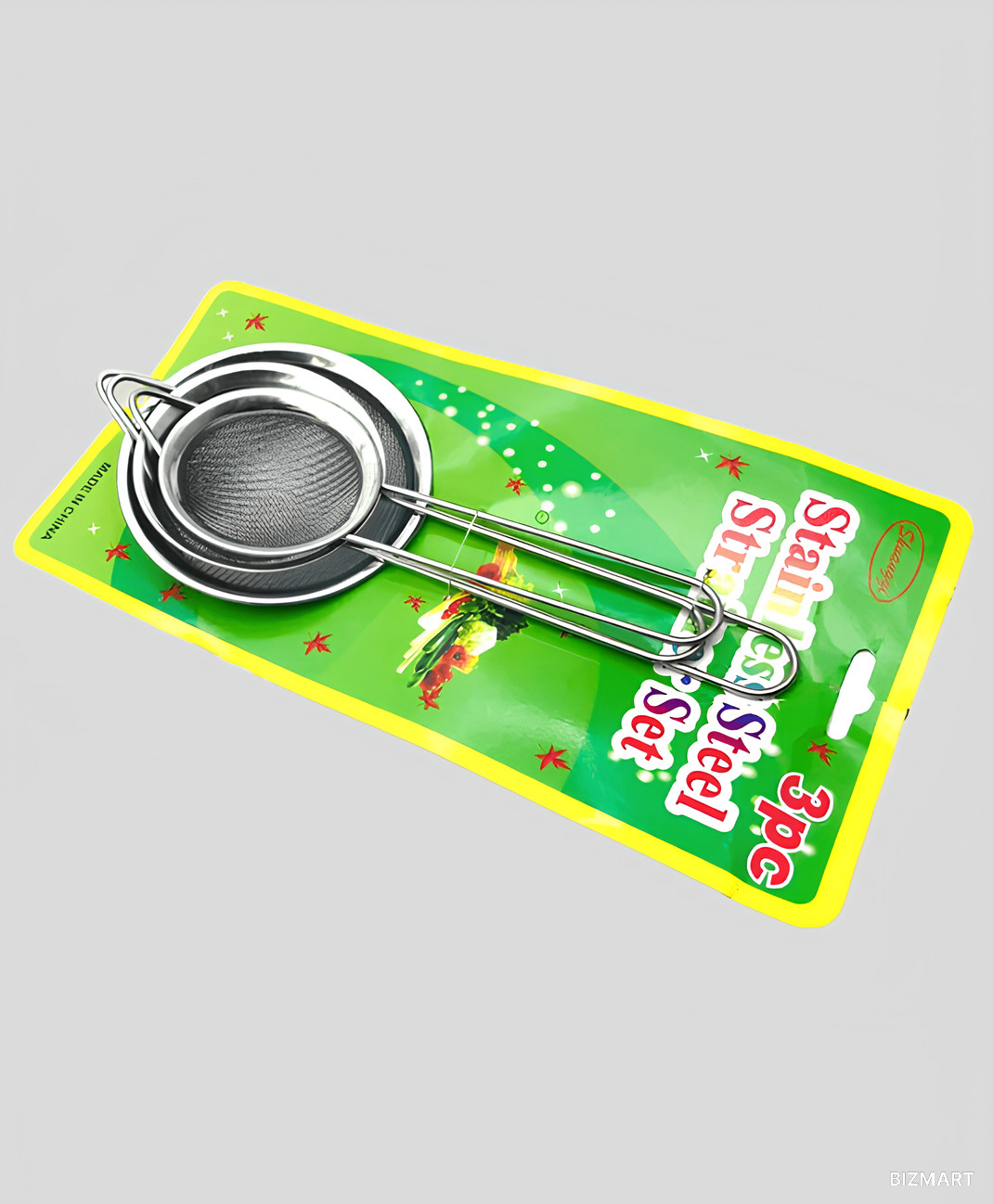 3 сита в диаметре: -маленькое 8 см -среднее 10 см -большое 12 см