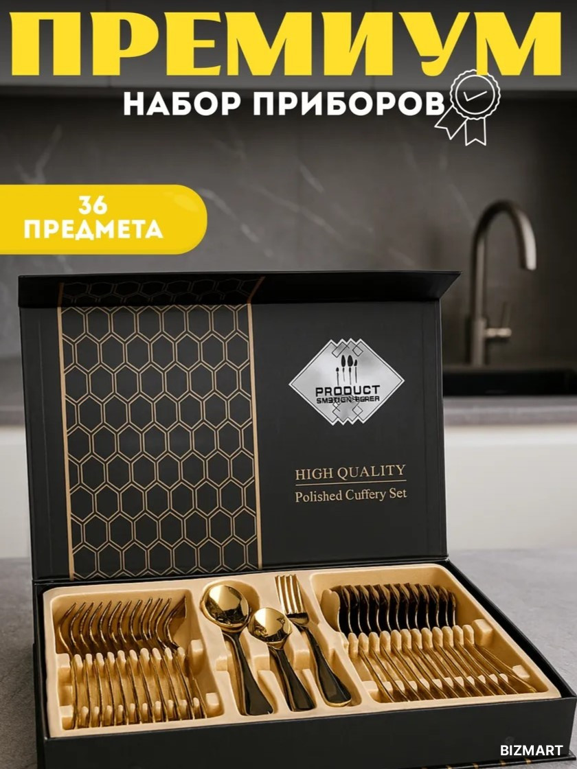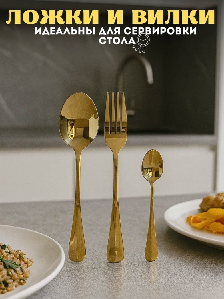 Добавьте блеска вашему праздничному столу с этим великолепным золотым набором. Эстетика «золотого стандарта» в сочетании с современными технологиями обработки металла делает эти приборы центральным элементом декора любой кухни или столовой.