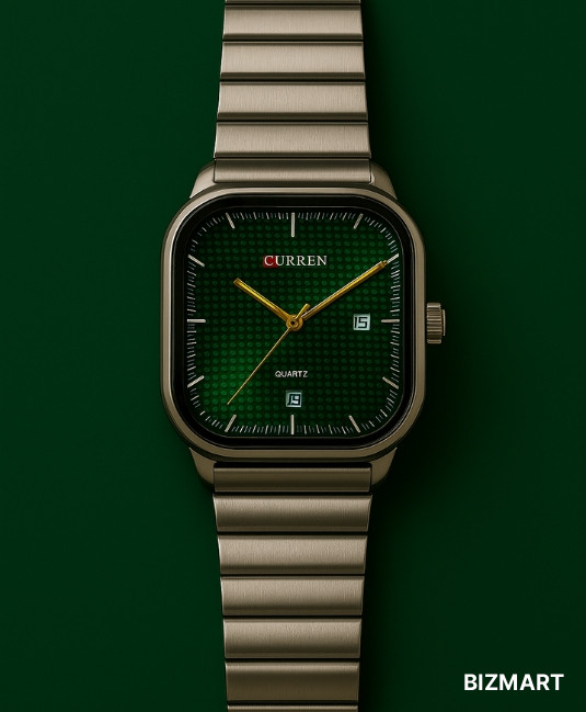 Наручные часы Curren Quartz — это современный дизайн в сочетании с практичностью. Стильный зелёный циферблат с оригинальной текстурой и золотистыми стрелками выделяет модель среди классических решений. Прямоугольный корпус и металлический браслет придают часам солидность и комфорт при носке. Кварцевый механизм обеспечивает точность хода, а наличие календаря делает модель удобной для повседневного использования. Универсальный дизайн подойдёт как к деловому костюму, так и к casual-образу. Эти часы подчеркнут индивидуальность и хороший вкус владельца.