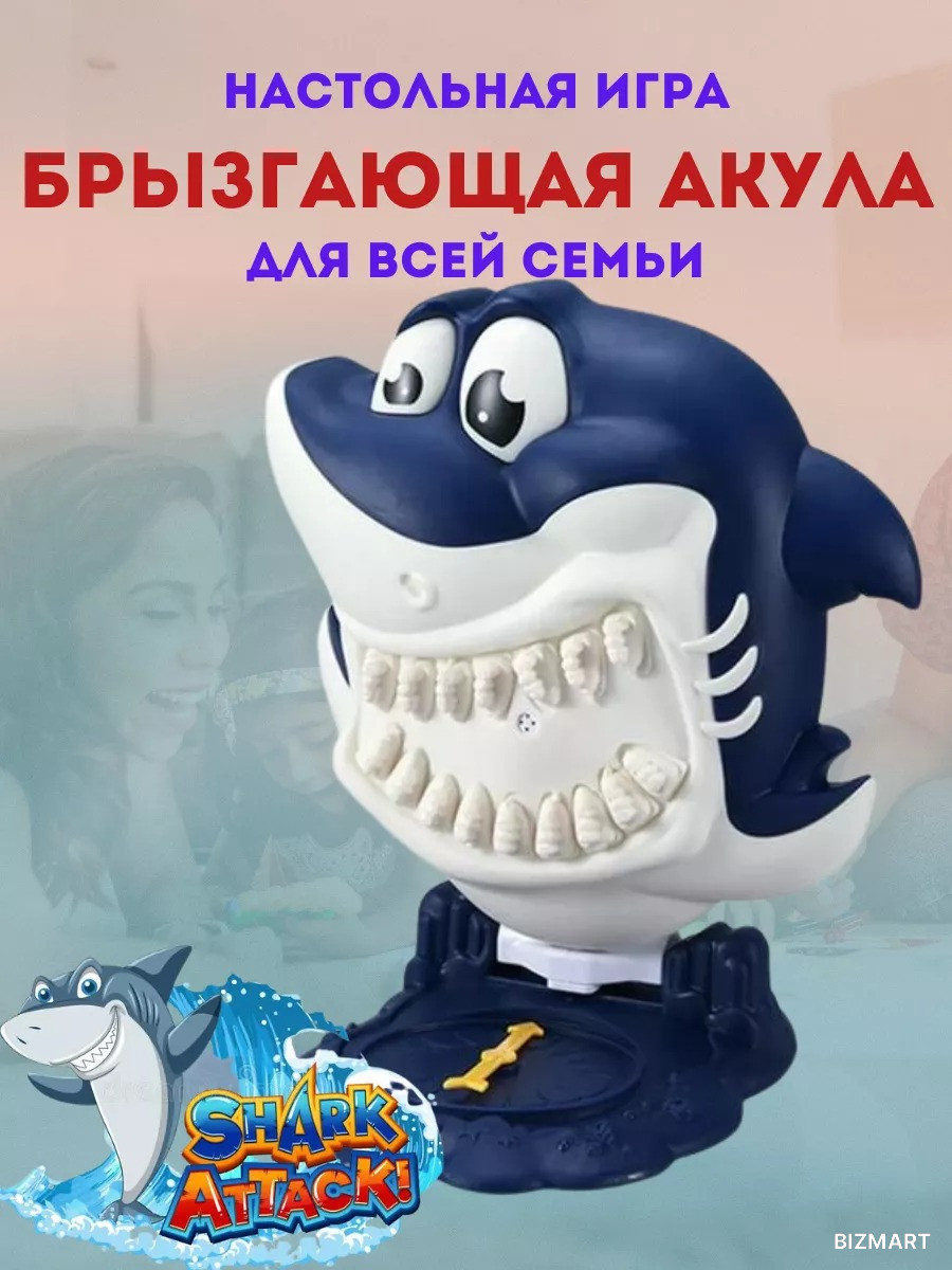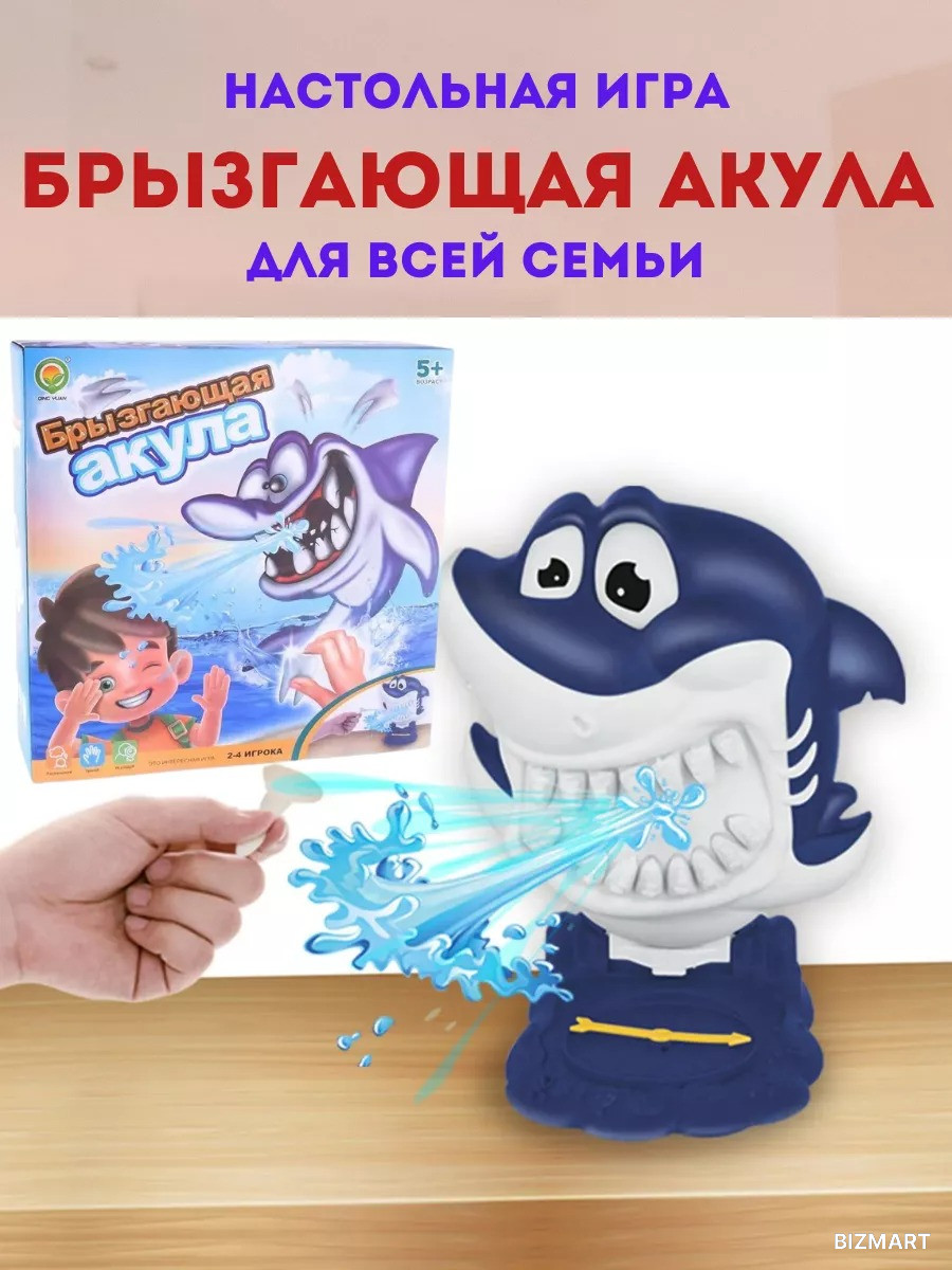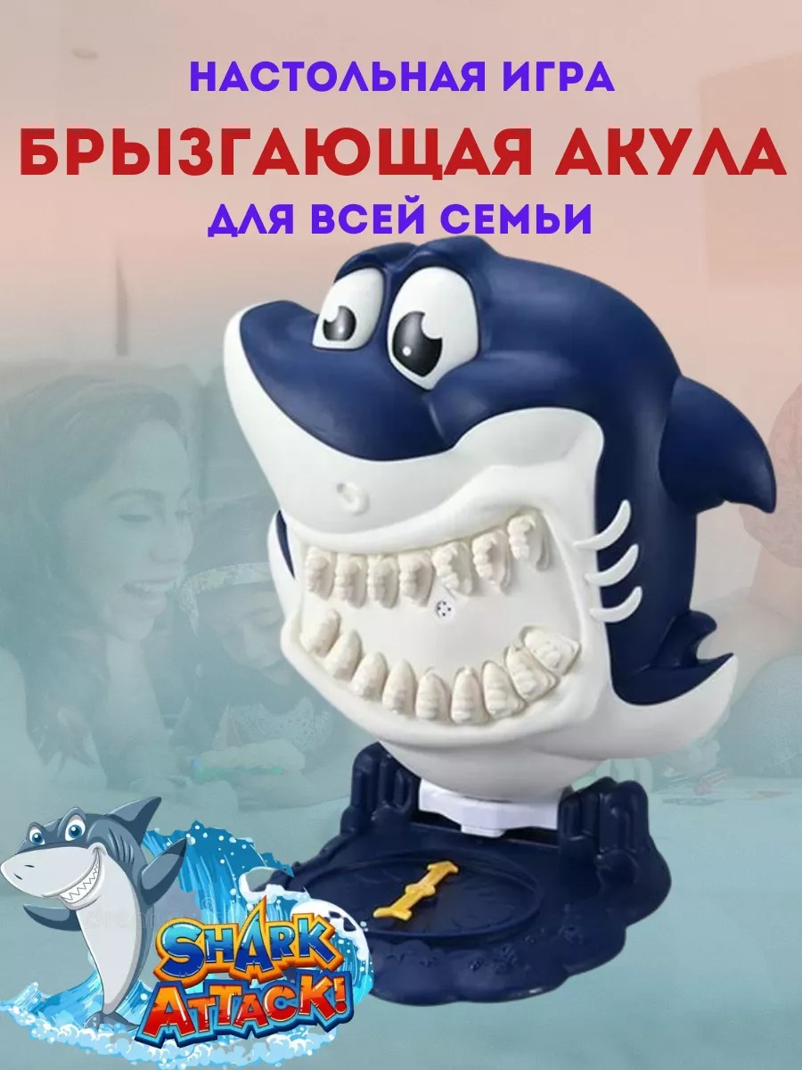 Настольная игра «Брызгающая акула» — это весёлая и динамичная игра для компании до 4 человек, которая подарит море эмоций детям и взрослым. Игрокам предстоит по очереди доставать зубы из пасти акулы, стараясь быть максимально аккуратными — ведь в любой момент акула может выпустить струю воды.