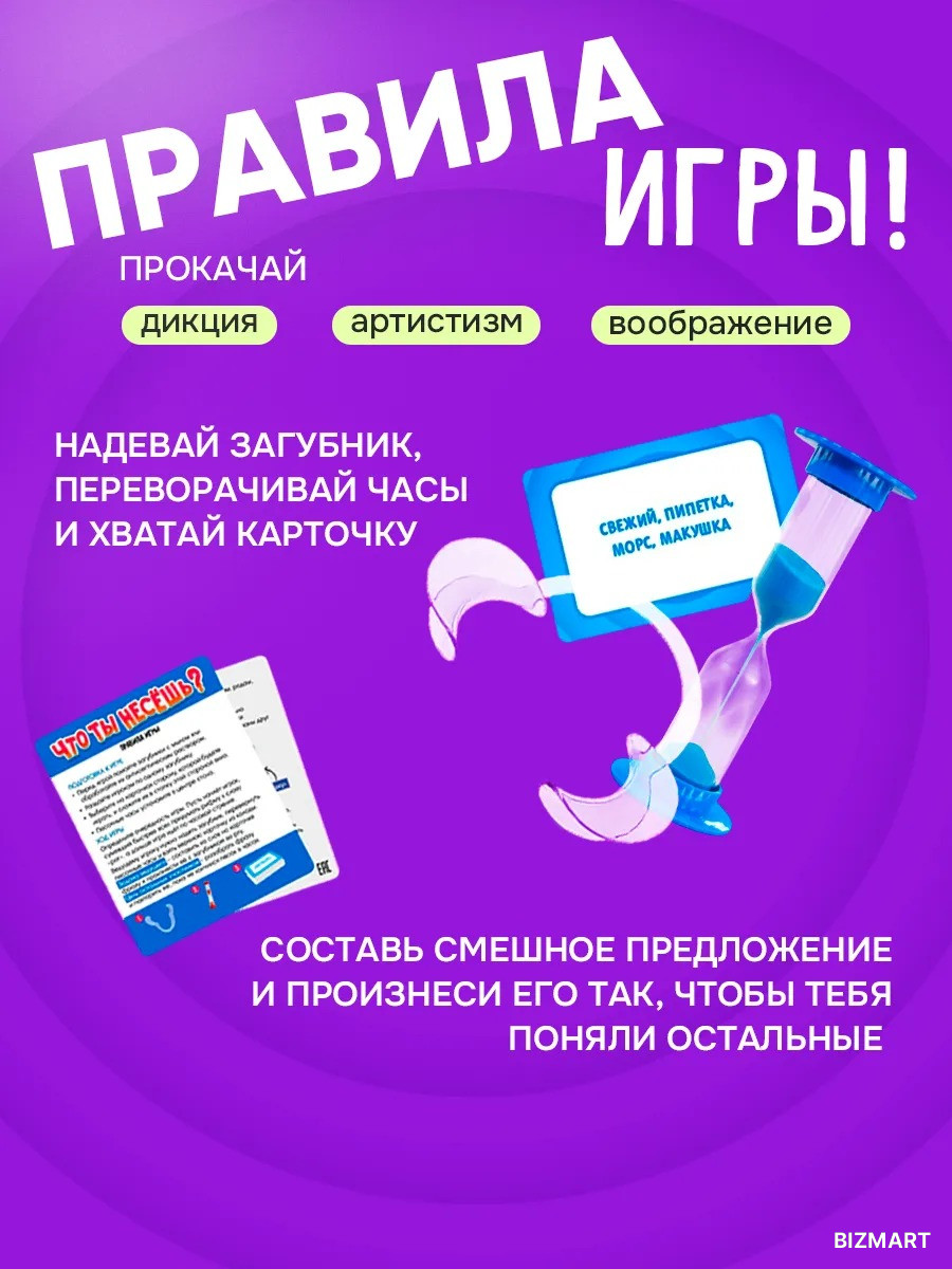«Что ты несёшь?» — это захватывающий челлендж для тех, кто любит юмор и необычные задания. Правила просты, но выполнение требует сноровки: игроки надевают специальные загубники (роторасширители), которые фиксируют губы, делая четкое произношение практически невозможным.