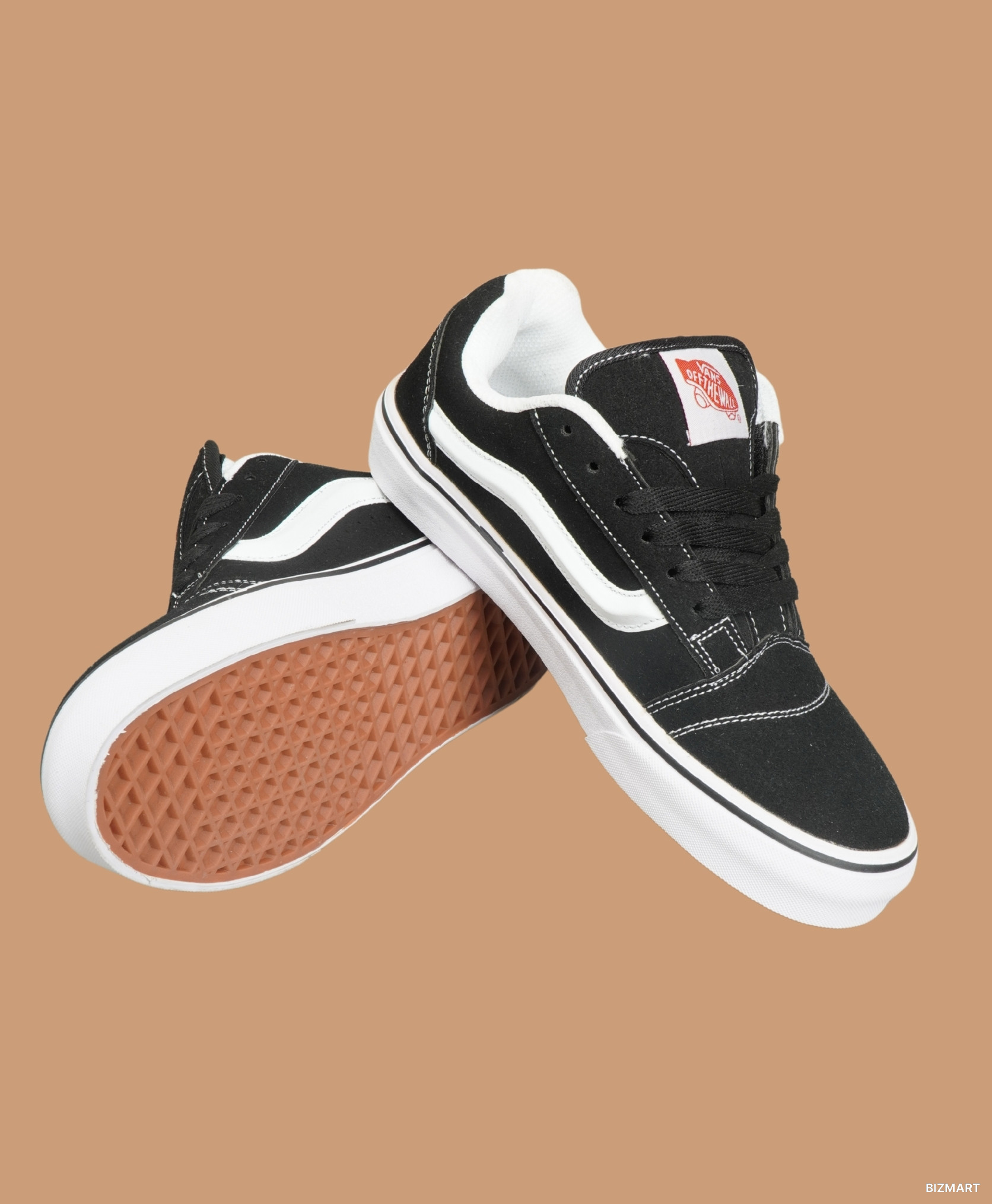 Классические чёрные кеды Vans — это удобная и стильная обувь на каждый день. Лёгкие, дышащие и при этом прочные, они отлично подойдут как для прогулок по городу, так и для активного отдыха. Хорошо сидят на ноге, не натирают и легко сочетаются с любой одеждой — джинсами, шортами или спортивными штанами. Универсальный чёрный цвет всегда в моде и подойдёт под любой образ. Надёжная резиновая подошва с фирменным рисунком не скользит и долго не стирается. Если ты ищешь удобную и проверенную временем обувь — эти Vans точно не подведут.