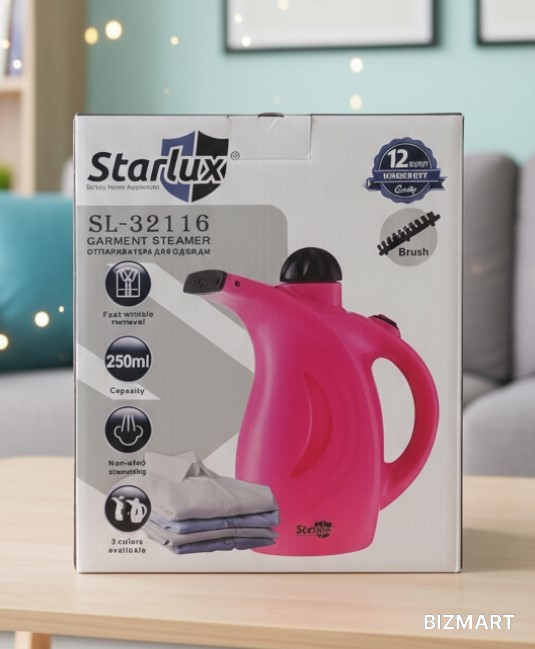 Отпариватель Starlux SL-32116 — это удобное и компактное устройство для быстрого ухода за одеждой. Он эффективно разглаживает складки, освежает ткани и устраняет запахи, не повреждая материал. Благодаря резервуару объёмом 250 мл прибор обеспечивает непрерывную подачу пара, что позволяет обработать несколько вещей за один раз.