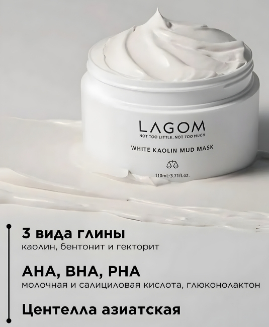 LAGOM представляет Белую каолиновую грязевую маску — идеальное средство для тех, кто ищет глубокое очищение без пересушивания. Созданная по принципу "Not Too Little, Not Too Much" (Ни много, ни мало), эта маска обеспечивает идеальный баланс: эффективно очищает, но бережно ухаживает.