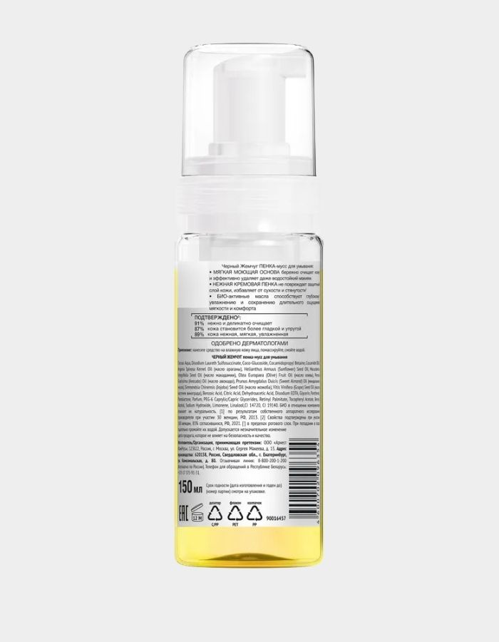 Очищающая пенка-мусс для умывания лица и снятия макияжа Черный Жемчуг 2 шт увлажняет кожу, избавляя ее от сухости и стянутости*. «Умывалка» для лица Деликатное очищение эффективно смывает даже водостойкий макияж.