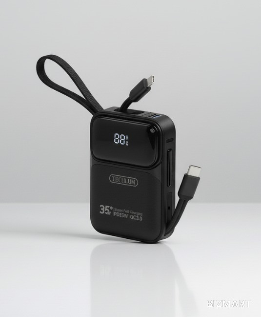Быстрая зарядка PD35W / QC3.0, LED-дисплей, компактный корпус, встроенный кабель, разрешён для авиаперевозок