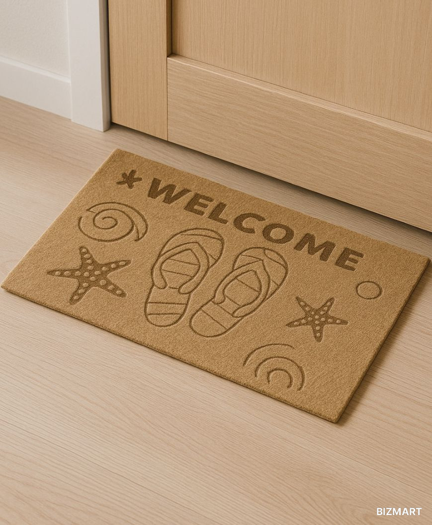 Придверный коврик для прихожей “WELCOME”, 38×58 см, бежевый — универсальный и стильный аксессуар для поддержания чистоты в прихожей. Компактный размер позволяет удобно разместить его у входа в квартиру, дом или офис. Светлый бежевый цвет придаёт интерьеру лёгкость и уют, а надпись WELCOME создаёт дружелюбную атмосферу для гостей. Коврик эффективно задерживает уличную грязь и влагу, помогая сохранять полы чистыми.