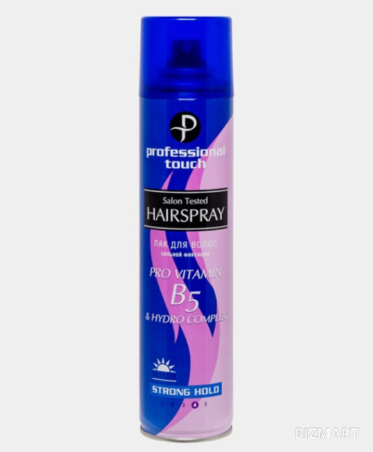 Лак для волос сильной фиксации волос PROFESSIONAL TOUCH серия Pro vitamin B5 & Hydro Complex содержит полимеры, витамин B и гидрокомплекс, обеспечивающие прическе стойкую сильную фиксацию и защиту от ультрафиолетового излучения УФ и увлажнение. Защищает от внешнего воздействия негативных факторов, дарит волосам блеск и ухоженный вид. Лак для волос экстрасильная фиксации волос PROFESSIONAL TOUCH идеален для создания объема и фиксации кудрей.