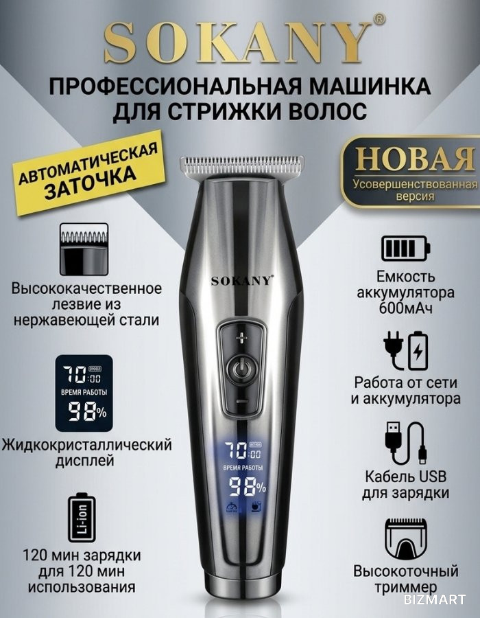 SOKANY представляет обновленную модель профессионального триммера, разработанную для тех, кто ценит максимальный контроль и безупречный результат. Этот компактный и мощный инструмент идеально подходит как для детальной окантовки стрижки, так и для идеального ухода за бородой и усами.