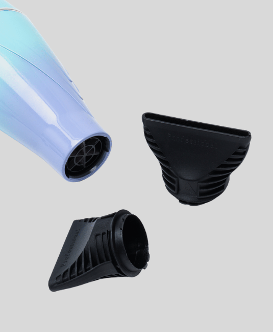Двигатель мощностью 2400 Вт быстро высушивает волосы, а специальная балансировка вентилятора снижает шум и делает поток воздуха мягким.