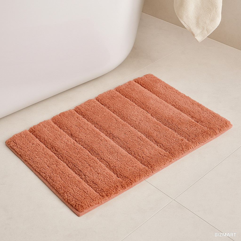 Антискользящая основа надёжно фиксирует коврик на плитке и предотвращает скольжение даже на влажном полу. Компактный размер 40×60 см делает коврик удобным для размещения у раковины, ванны или душевой кабины.