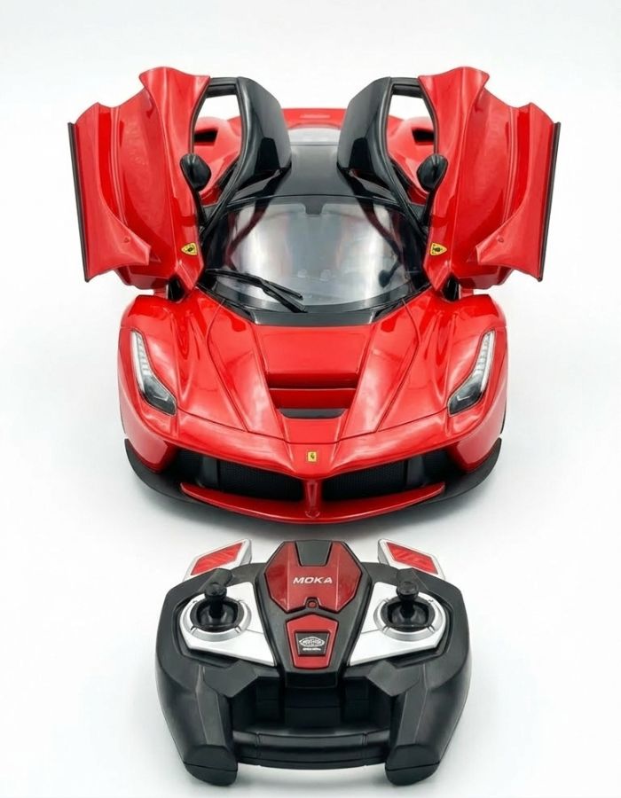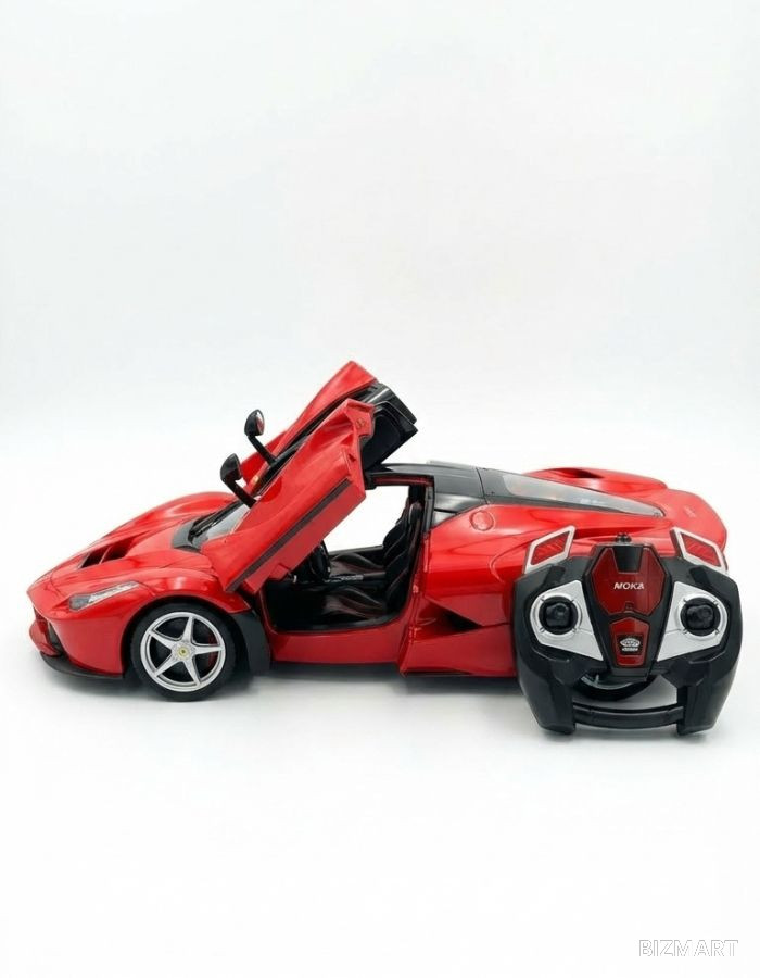 Модель выполнена в ярком красном цвете и отличается высокой детализацией кузова. Особенностью автомобиля являются открывающиеся двери, придающие модели ещё больше реалистичности. В комплекте идёт удобный пульт дистанционного управления, который позволяет легко управлять машинкой — двигаться вперёд, назад и поворачивать.