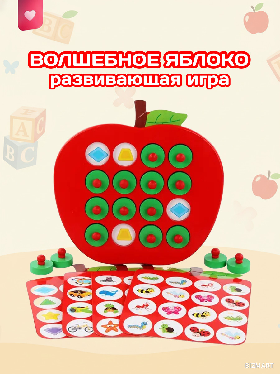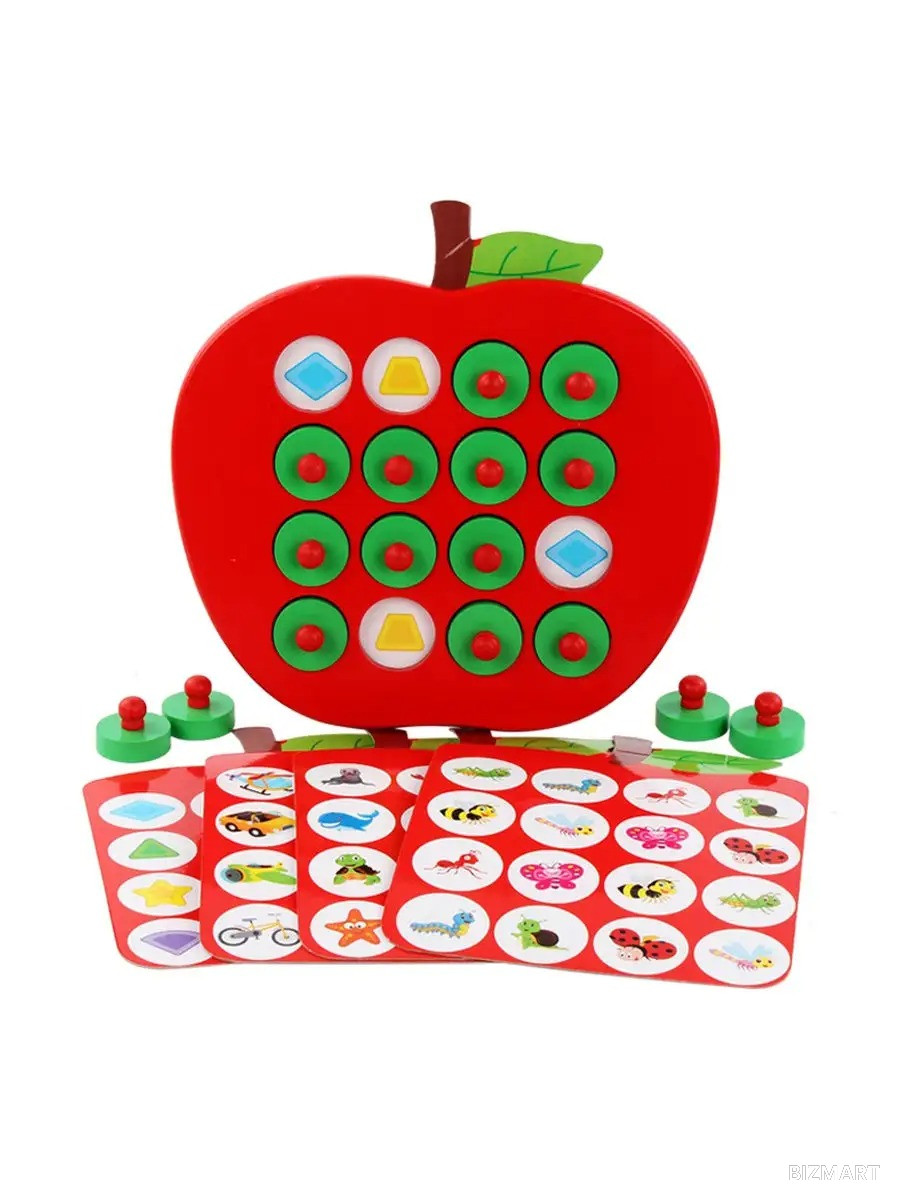 Развивающая игра «Яблоко» — это увлекательная деревянная игра-мемори, созданная для развития памяти, внимательности и мышления у детей. Игровое поле выполнено в виде яркого яблока и оснащено крышечками, под которыми скрываются изображения.