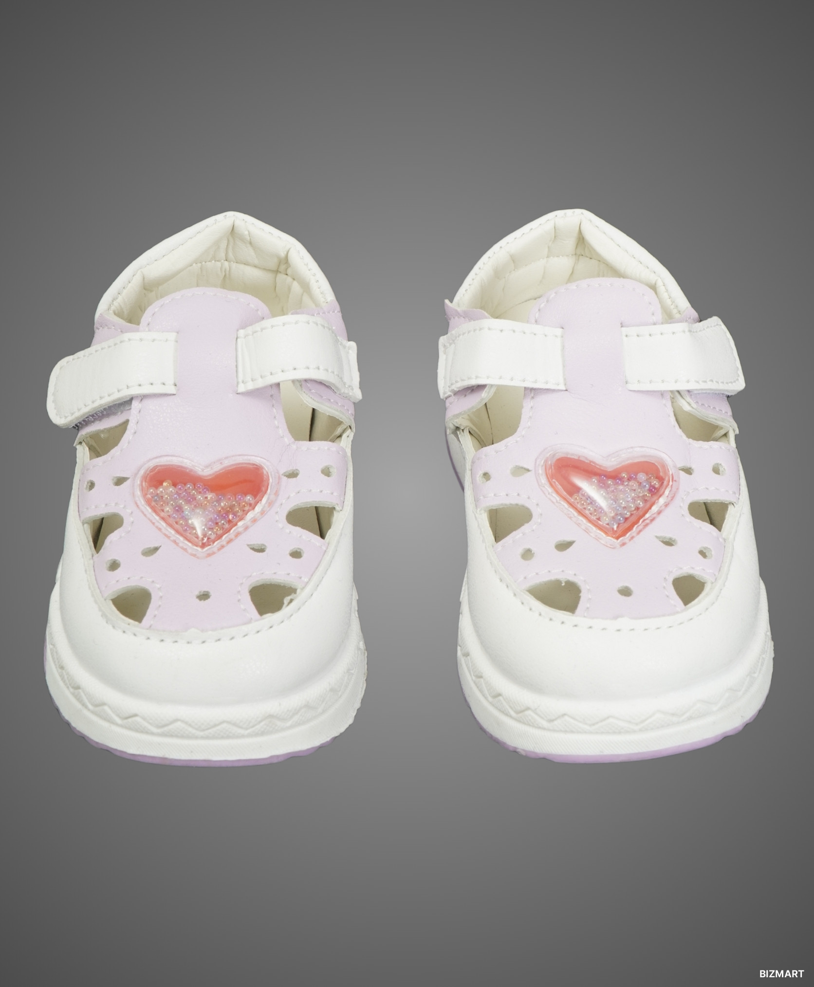 Светлые детские сандалии с нежно-фиолетовыми акцентами — лёгкая и удобная обувь для тёплых дней. Выполнены в мягких, нежных тонах, которые подойдут под любой летний наряд.