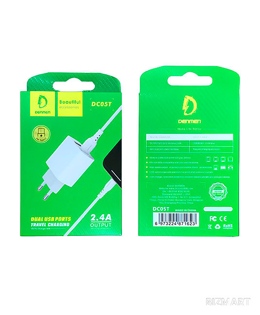 Сетевое зарядное устройство DENMEN DC05T (2USB 2.4A) Lightning, белое – универсальное решение для быстрой и безопасной зарядки ваших устройств.