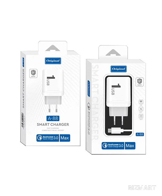 Сетевое зарядное устройство Smart Charger Original A-88 3.5A с кабелем Micro-USB, белый – надежное и мощное решение для быстрой зарядки ваших устройств.