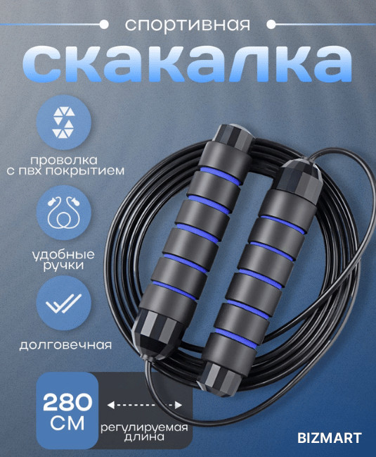 Спортивная скакалка длиной 280 см с регулируемой длиной оснащена прочной проволокой с ПВХ-покрытием, что обеспечивает долговечность и устойчивость к износу. Удобные ручки с мягкими вставками гарантируют комфортный хват и предотвращают скольжение во время тренировок. Отлично подходит для кардионагрузок, кроссфита и повседневных фитнес-занятий.