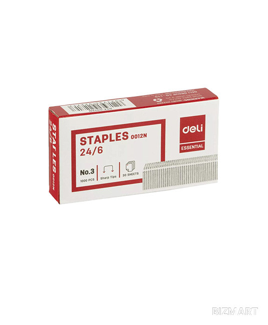 Скобы для степлера №24,6 Deli E0012N — идеальный выбор для офисного и школьного использования. Изготовленные из оцинкованного металла, эти скобы гарантируют надежное и долговечное скрепление документов. Их сбалансированная твердость и острые заостренные кончики позволяют легко пробивать листы бумаги, обеспечивая качественное скрепление даже нескольких страниц одновременно. Каждая скоба имеет логотип Deli на внутренней стороне, что подчеркивает качество продукта. Упакованы в удобную картонную коробочку, содержащую 1000 штук, что делает их экономичным вариантом для частого использования. Подходят для большинства стандартных канцелярских степлеров, скобы Deli E0012N станут незаменимым помощником в вашей работе и учебе. Повышайте эффективность своих задач с надежными скобами от Deli.