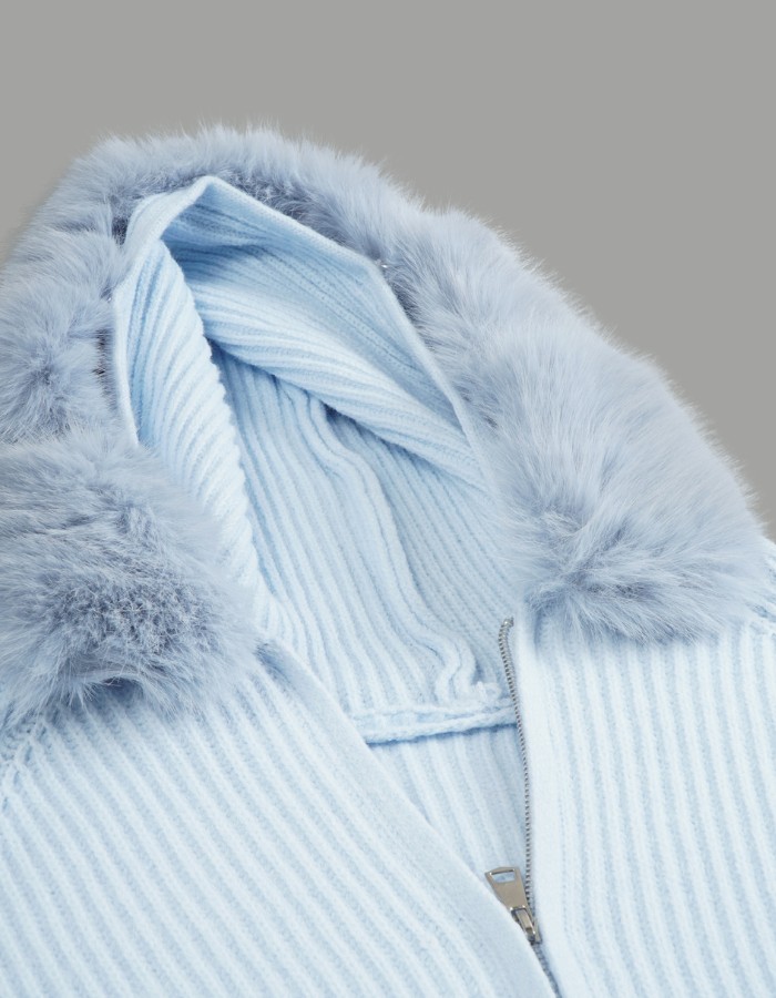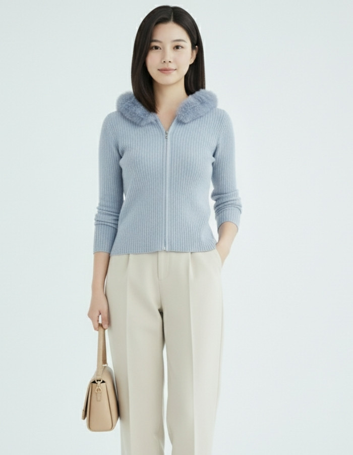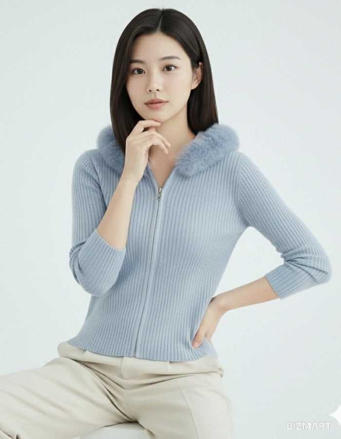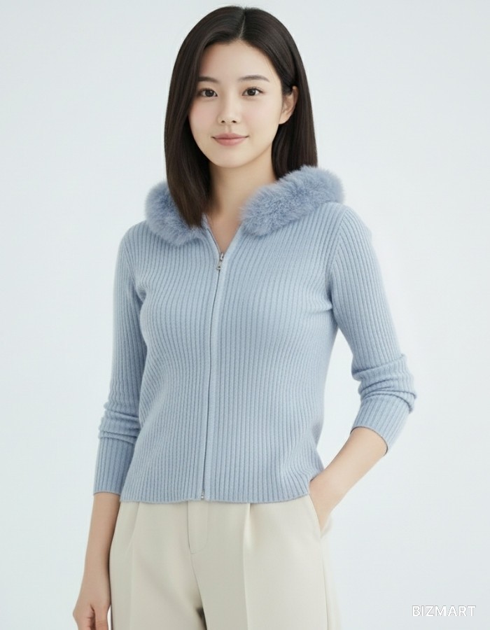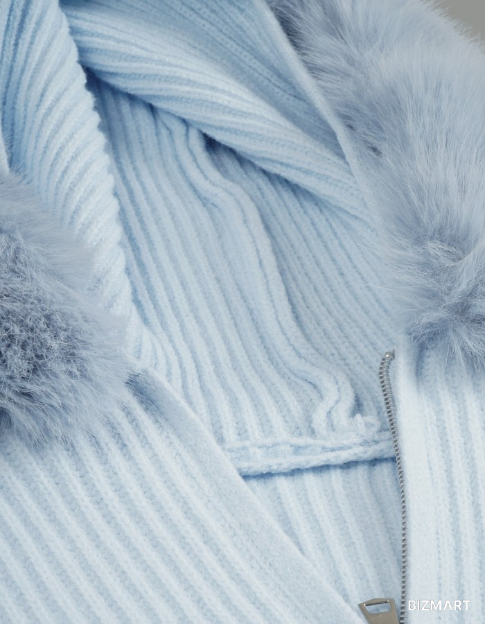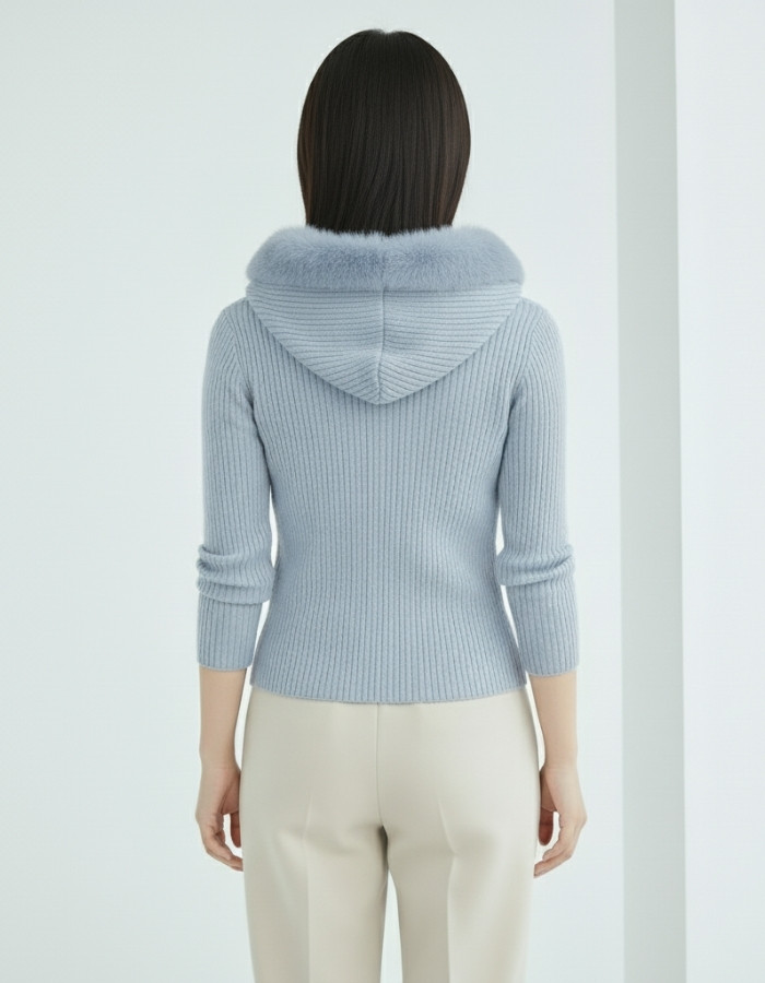 Стильный и уютный кардиган, который сразу притягивает внимание. Мягкая ребристая вязка подчеркивает фигуру, а меховой капюшон добавляет образу женственности и шарма. Лаконичный дизайн делает модель универсальной — идеально сочетается и с джинсами, и с классическими брюками.