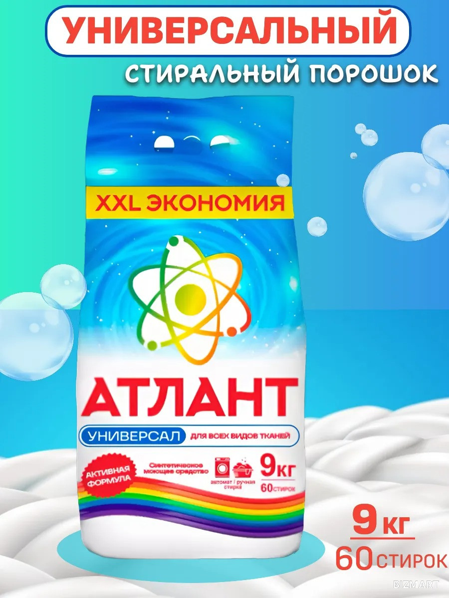 Универсальный порошок Атлант — это мощная формула для эффективной стирки всех видов тканей. Подходит как для машинной, так и для ручной стирки. Легко справляется с загрязнениями, сохраняя яркость и свежесть вещей. Удобная упаковка 9 кг — до 60 стирок!
