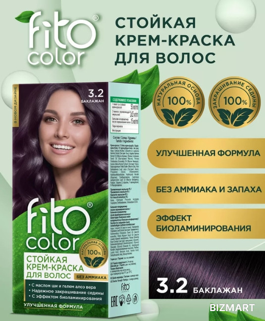 Стойкая крем-краска Fito color — природная красота для Ваших волос! Единственная крем-краска для волос, разработанная на основе натуральных природных компонентов! Нежная кремовая текстура краски, обволакивая каждый волос, глубоко проникает в его структуру и окрашивает в сочные, объёмные, яркие, цвета. Крем-краска идеально закрашивает седину! Входящие в состав натуральные масла и экстракты растений питают, укрепляют и восстанавливают волосы, придают им гладкость, эластичность и объём.