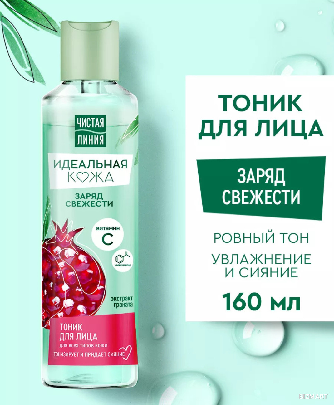 После умывания воспользуйся тоником для лица Идеальная кожа для всех типов кожи. Он удалит остатки макияжа, а также освежит и увлажнит кожу, подготовив ее к нанесению крема. Такой подход позволит забыть о несовершенствах кожи и тусклом цвете лица. Витамин С - мощный природный антиоксидант, придает сияние и выравнивает тон кожи. Ниацинамид увлажняет, участвует в нормализации обменных процессов кожи, способствует сужению пор. Экстракт граната обеспечивает антиоксидантное действие и поддерживает собственную защиту кожи от неблагоприятного воздействия окружающей среды. Пантенол смягчает и восстанавливает кожу.