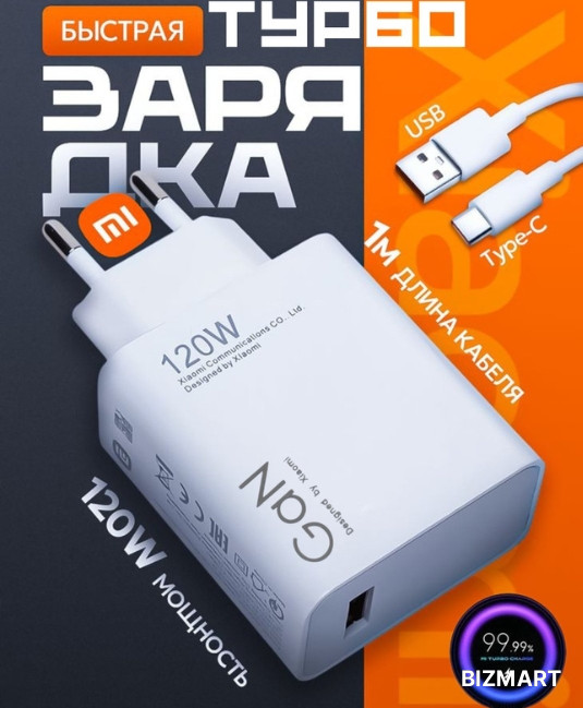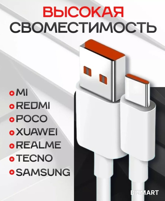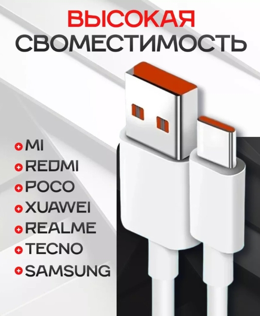 Блок питания с портом Type-A совместим с быстрой зарядкой различных устройств, включая смартфоны Xiaomi, Huawei, Samsung, Honor, POCO, Redmi и iPhone.