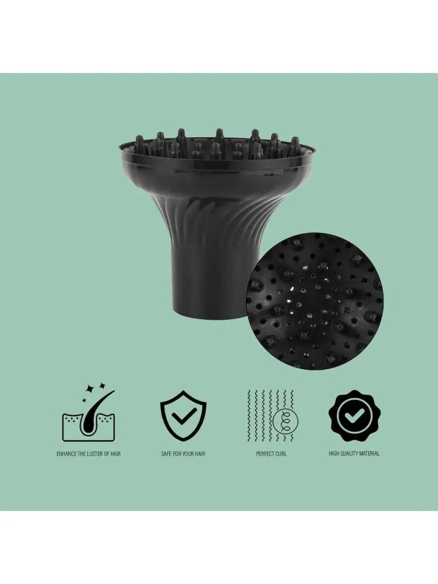 Профессиональный результат дома: С этим диффузором вы сможете без лишних усилий достичь результатов салонной укладки, сохраняя при этом естественный и здоровый вид ваших волос.