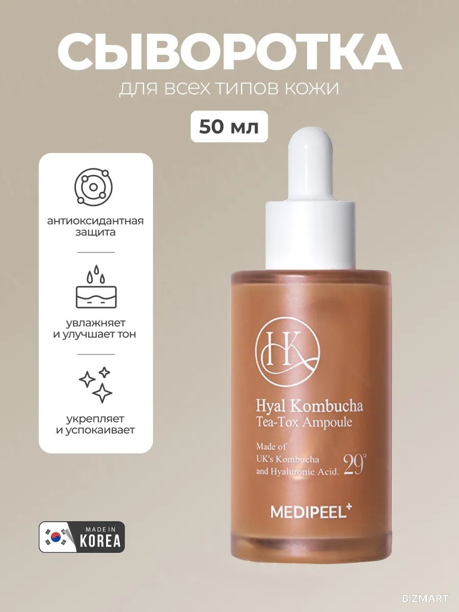 Сыворотка с комбучей Medi-Peel Hyal Kombucha Tea-Tox предназначена для интенсивного увлажнения и восстановления кожи. Она оживляет уставшую, обезвоженную кожу, придавая ей здоровое сияние и упругость. Благодаря сочетанию комбучи (70%), гиалуроновой кислоты и керамидов, сыворотка эффективно укрепляет кожу, улучшает её текстуру и восстанавливает гидролипидный баланс.