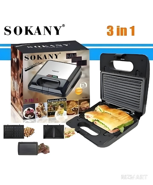 Sokany 3 in 1 Sandwich Maker это многофункционалный прибор, предлагающий три метода приготовления пищи, чтобы сделать ваш выбор максимально разнообразным и удобным. Сэндвичница (вафельница,грильница) идеально подходит для приготовления сэдвич прессы, гриля, панини, вафель. Сьемные пластины легко моются, Антипригарная поверхность для гриля. Может стоять вертикально, когда не используется для компактного хранения.