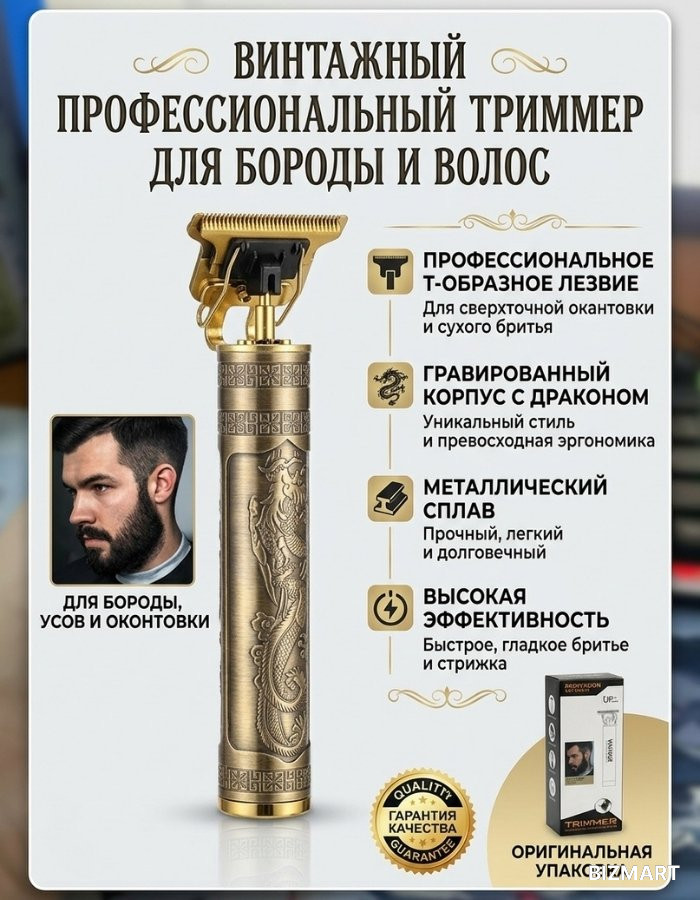 Винтажный профессиональный триммер — это сочетание высокой точности, мощности и стильного дизайна. Идеально подходит для ухода за бородой, усами и создания чётких контуров причёски.