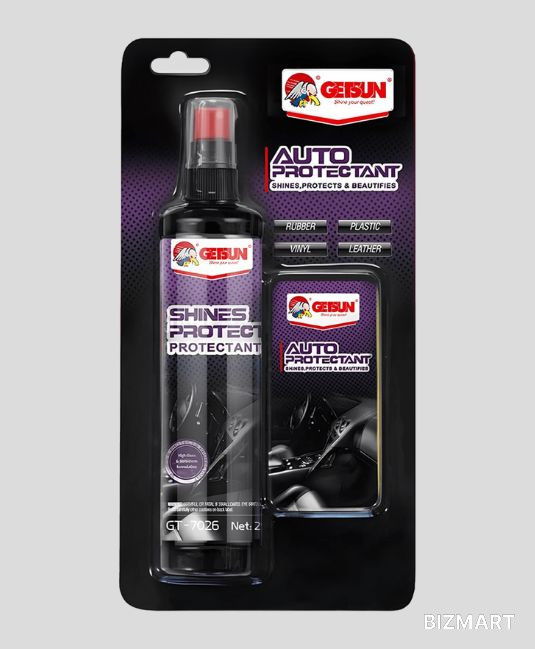 GETSUN Protectant придает исключительно глянцевый блеск поверхностям из винила, резины и пластика. Он помогает защитить поверхности от выцветания и растрескивания, уменьшая ультрафиолетовое излучение, при этом выявляя цвет, восстанавливая блеск и сияние. Защищает от истирания. Снижает статическое электричество, помогая уменьшить притяжение пыли и грязи! Если требуется меньший блеск, слегка отполируйте влажной тканью.