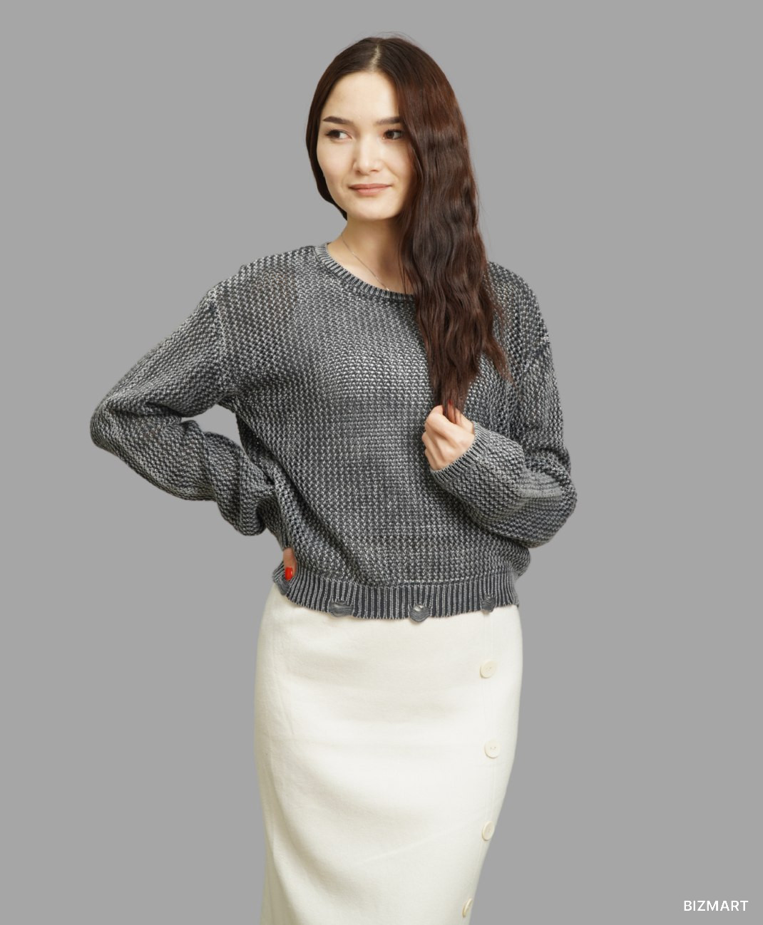 Модель имеет свободный крой, что делает её идеальной для создания непринужденного стиля, а нейтральные оттенки позволяют легко сочетать её с различными предметами гардероба. Универсальная кофточка подходит как для работы, так и для прогулок, обеспечивая вам уверенность и комфорт в любой ситуации.