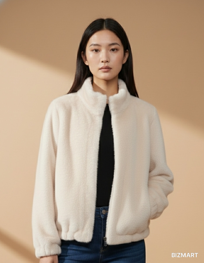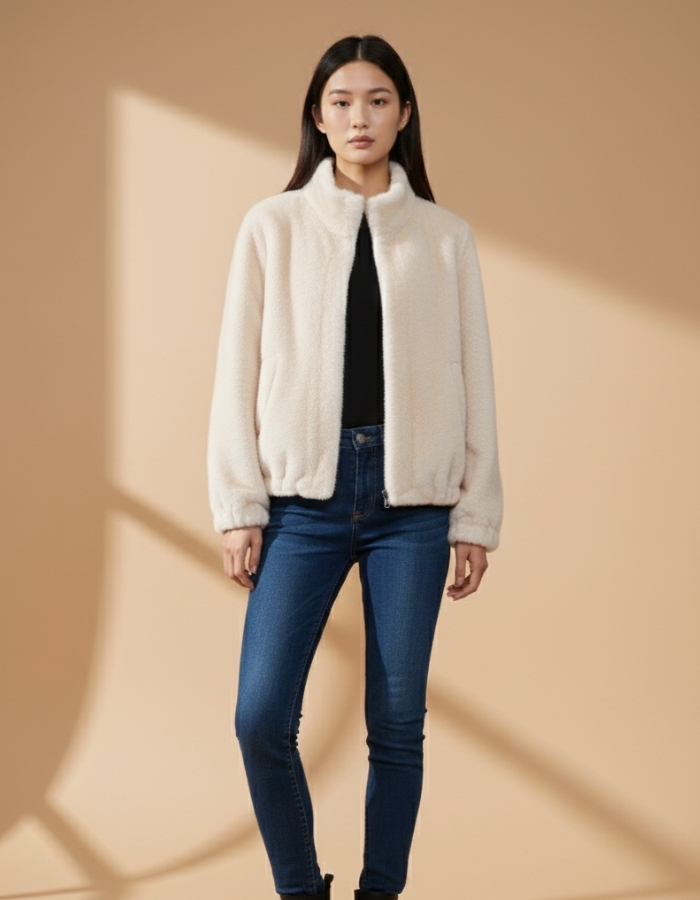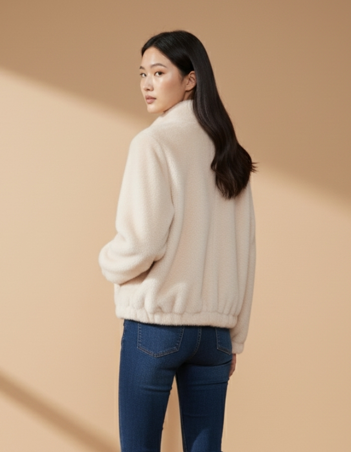 Шубка имеет удобную застёжку-молнию, тёплый воротник-стойку и аккуратную посадку по низу и рукавам благодаря мягким резинкам. Материал очень приятный на ощупь, создаёт эффект воздушного меха и отлично сохраняет тепло.