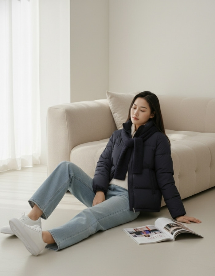 Удобная и тёплая женская куртка классического силуэта — отличный вариант для повседневной носки в холодное время года. Модель выполнена без оверсайз-посадки, благодаря чему аккуратно подчёркивает фигуру и обеспечивает комфортную посадку. В комплект входит функциональный шарф-капюшон, который можно носить как отдельный аксессуар или использовать для защиты от ветра и холода.