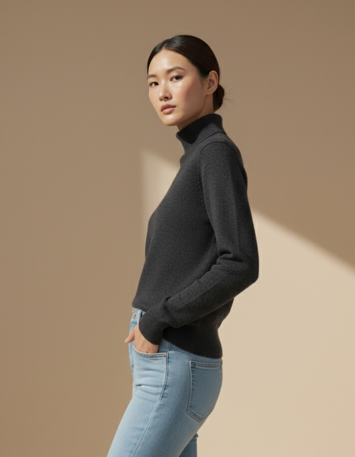 Стильная водолазка из мягкого трикотажа с высоким воротником. Плотная и приятная к телу ткань обеспечивает комфорт и сохраняет форму после стирки. Элегантный графитовый оттенок добавляет образу утончённость и универсальность — подходит как для офиса, так и для повседневной носки. Отлично сочетается с джинсами, брюками и юбками.